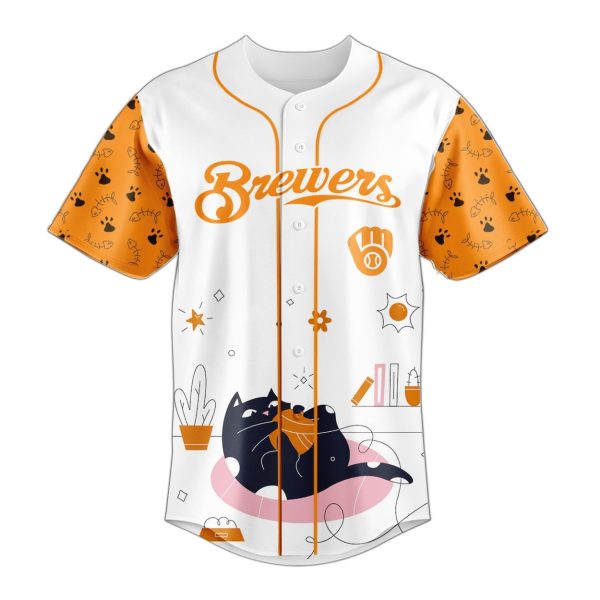 Keep your jersey looking fresh by machine washing it in cold water with similar colors and tumble drying on low. Avoid bleach to maintain its vivid design. This jersey provides excellent flexibility, comfort, and a unique fusion of sports and pet culture, perfect for all-day wear. It also makes a purr-fect gift for Brewers supporters and cat lovers alike.