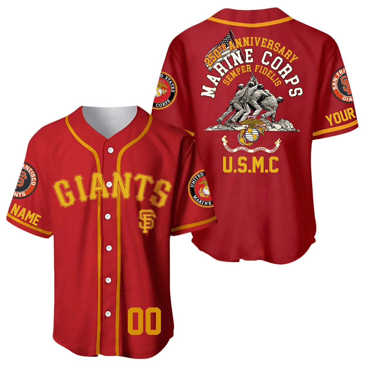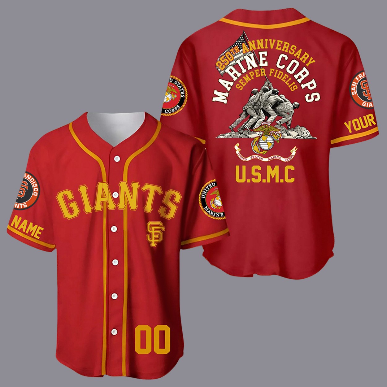 Celebrate a legacy of courage with the 2025 Giants USMC 250th Birthday Jersey! This striking red jersey commemorates the U.S. Marine Corps’ 250th anniversary, blending SF Giants pride with military honor. Available in sizes S to 6XL, it’s crafted from lightweight polyester, perfect for fans and patriots alike.