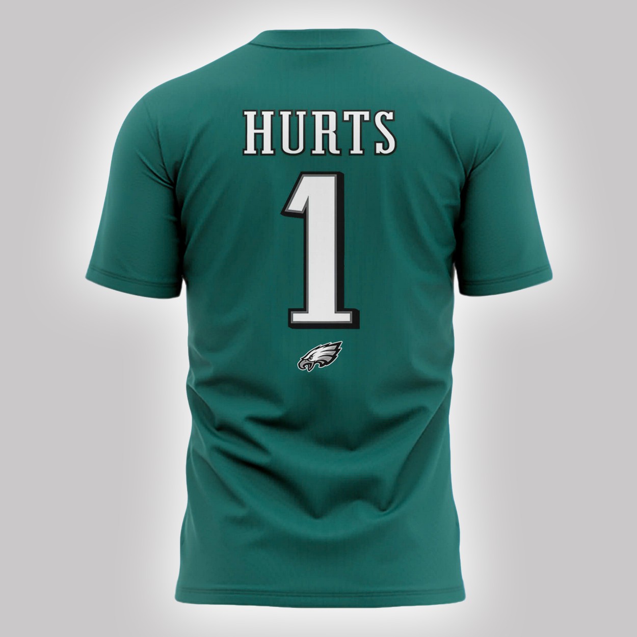 - The back proudly displays “HURTS 1” with the Eagles emblem, blending bold graphics with team loyalty. This tee is a perfect tribute to Hurts’ 2025 season.