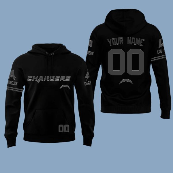 - The design features the striking “CHARGERS” lettering with a lightning bolt accent, paired with “Los Angeles” details on the sleeves and a customizable “YOUR NAME” and “00” on the back.