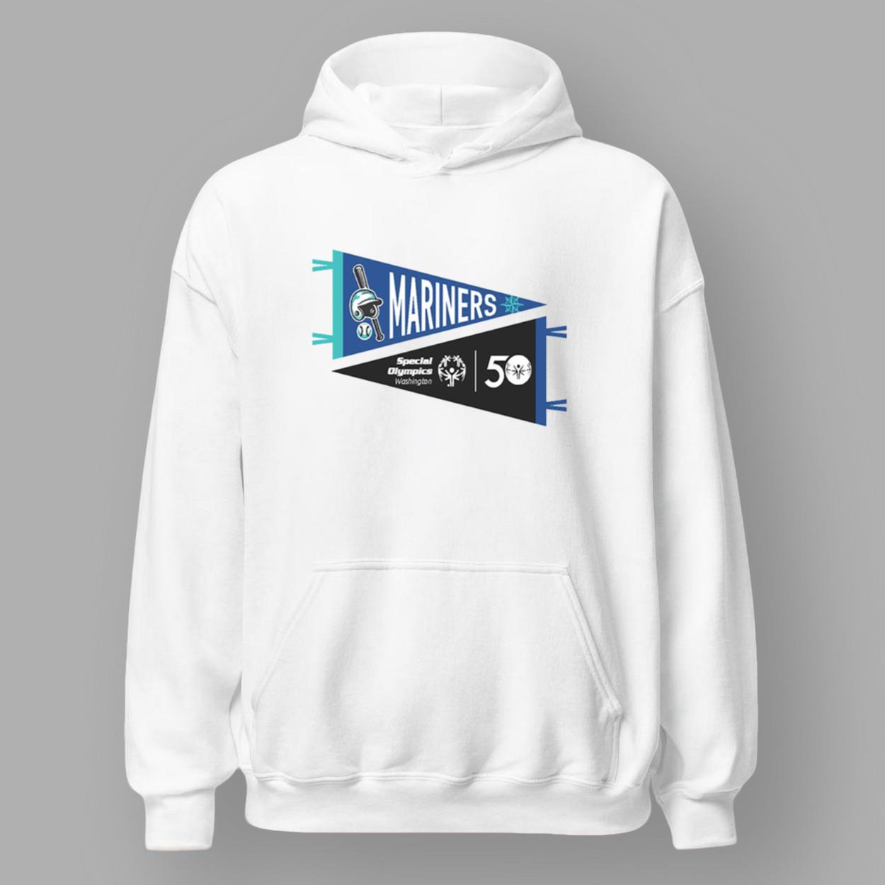 - Features two pennants celebrating the Mariners and Special Olympics Washington’s 50th anniversary.
