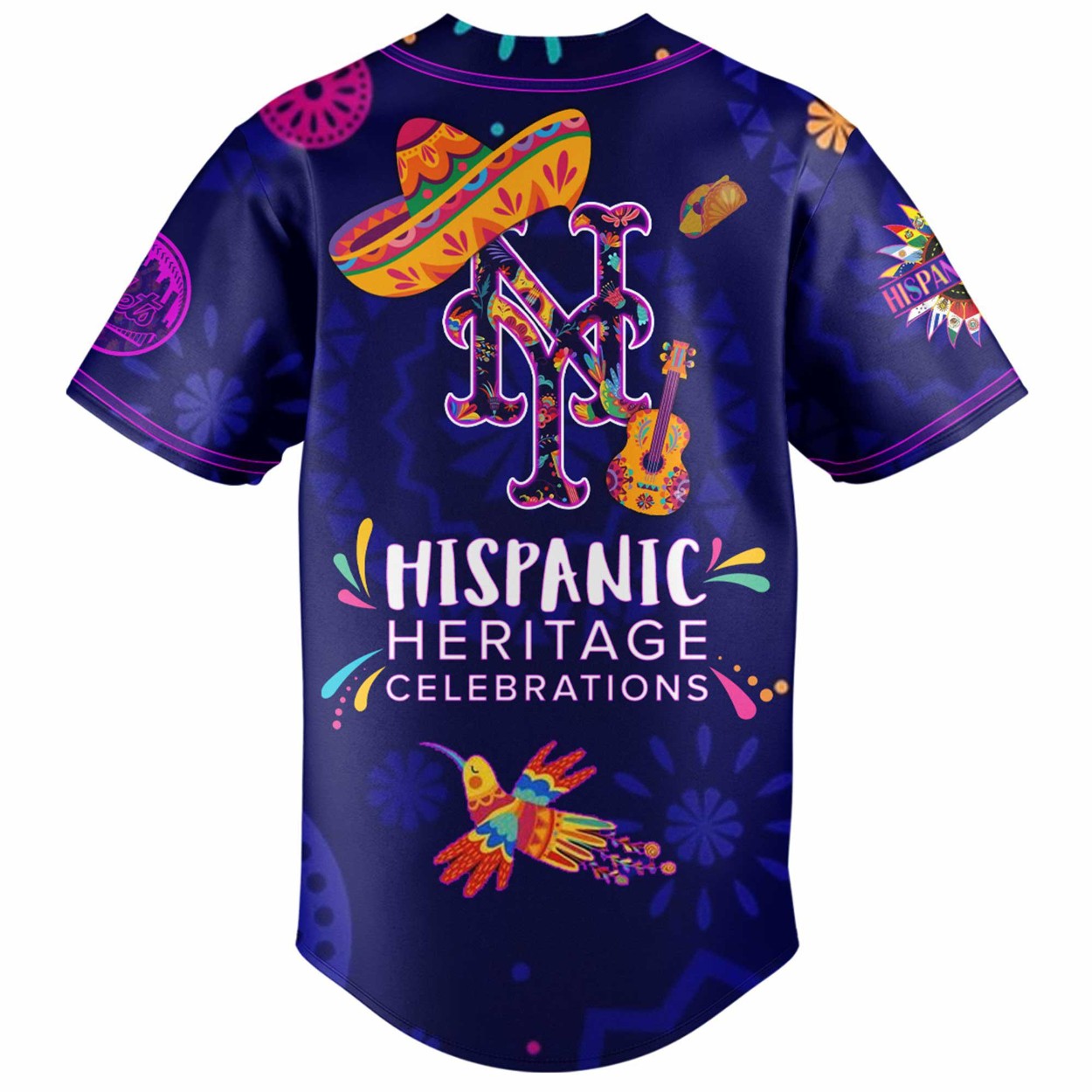Dive into the vibrant celebration of Hispanic Heritage with the 2025 Mets Hispanic Heritage Celebrations Jersey! This eye-catching jersey fuses the NY Mets’ iconic style with a burst of cultural flair, featuring sombrero accents, guitars, and a lively hummingbird design. Available in sizes S to 6XL, it’s made from premium polyester, offering a perfect mix of durability and comfort for game days, events, or casual outings. The rich purple and blue hues, paired with intricate patterns, make it a bold tribute to heritage and team pride.