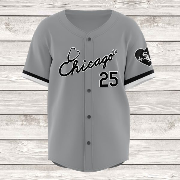 - This gray jersey, available in sizes S to 6XL, showcases a unique design with “Chicago” scripted across the chest, paired with the number 25.