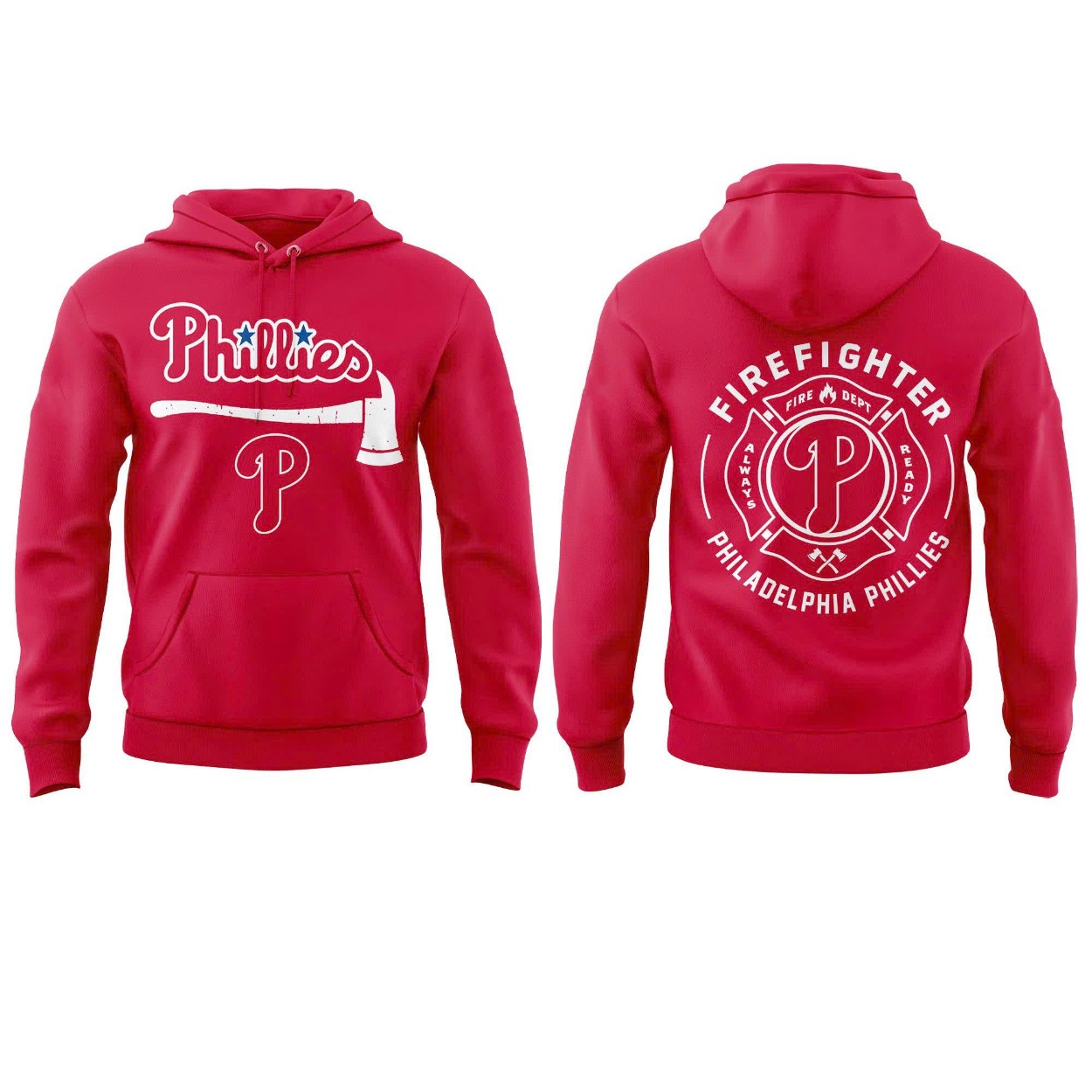 Celebrate the unwavering spirit of the Philadelphia Phillies and pay tribute to the courage of the city’s firefighters with the unique Phillies Firefighter Application Hoodie.