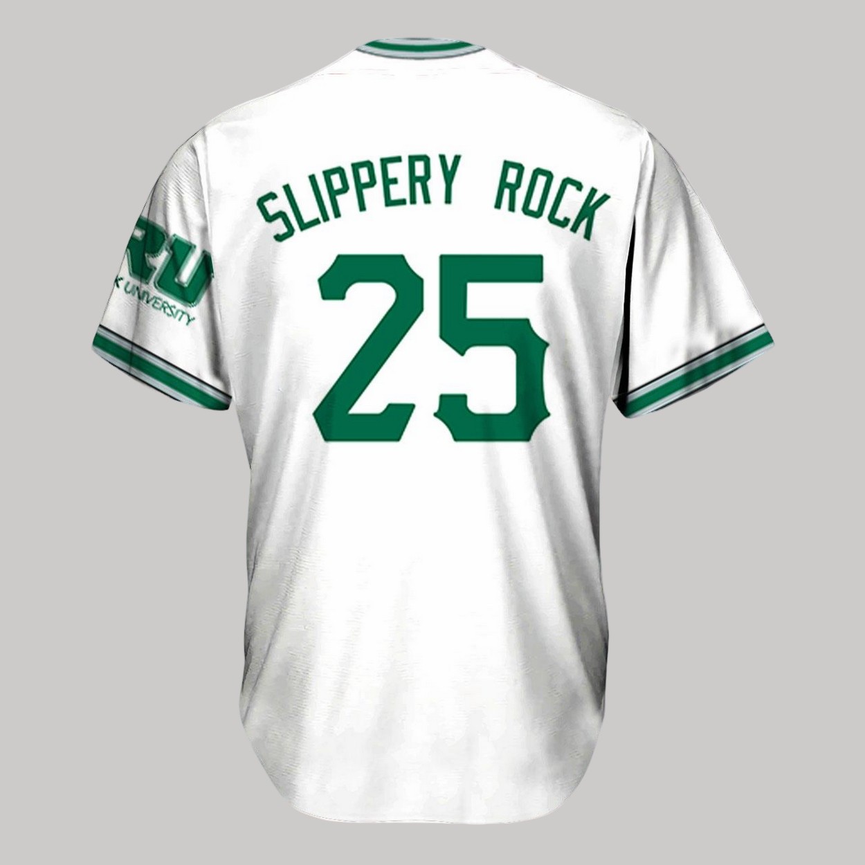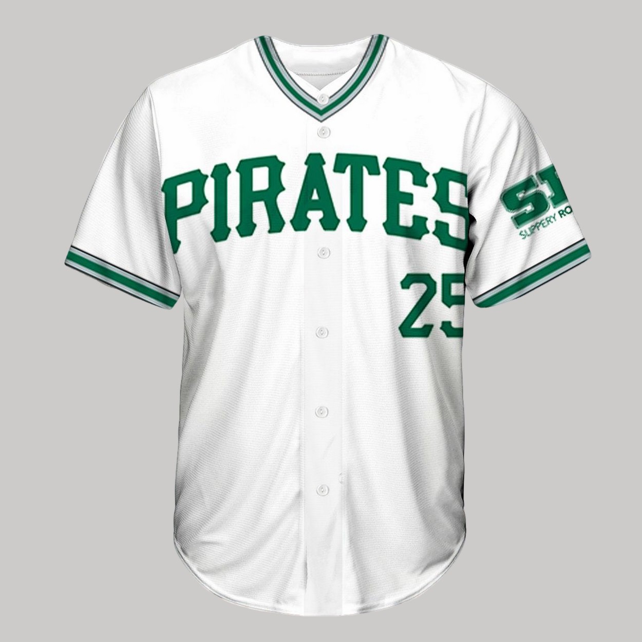 Get ready to cheer in style with the 2025 Pirates Slippery Rock Jersey Giveaway—a special-edition piece that celebrates the Pirates and their partnership with Slippery Rock! This jersey, featuring the Pirates’ classic white design with green accents, proudly displays “PIRATES” and the number 25 on the front, while the back showcases “SLIPPERY ROCK” above the number. Perfect for fans of both the team and the university, this 2025 giveaway item is a unique way to show your pride.