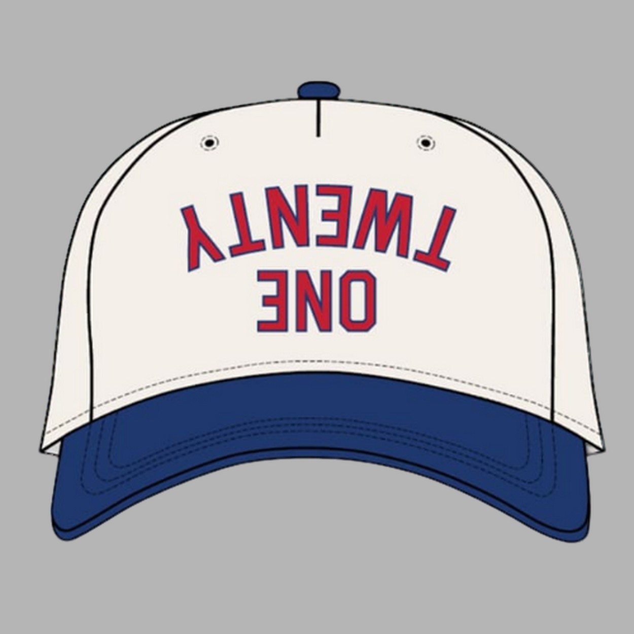 - This one-size-fits-all cap features a stylish cream body with a navy blue bill and embroidered “TWENTY ONE” text in bold red, symbolizing support for Down Syndrome awareness.