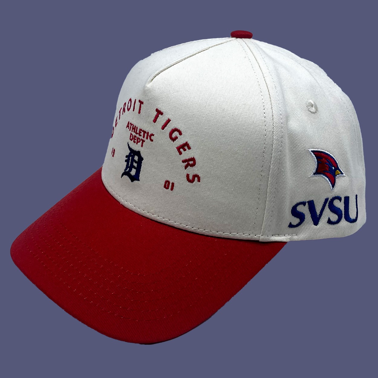 This embroidered hat is a work of art, with the Tigers’ signature “D” front and center, complemented by detailed stitching that highlights the athletic department’s legacy. The SVSU logo on the side adds a unique flair, making it a perfect fusion of professional and academic pride. Made from lightweight polyester, it offers a comfortable fit for all-day wear, whether at games or campus events.