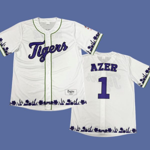 Step up your game with the 2025 Tigers x Powerless Themed Jersey Giveaway! Available in sizes S to 6XL, this jersey is crafted from premium polyester for a lightweight, durable fit. Featuring a crisp white base, it showcases the bold “Tigers” script in vibrant purple, paired with the name “Azer” and number 1 in matching tones. Unique floral and vine patterns in purple line the sleeves and hem, blending the Powerless theme with Detroit’s fierce spirit. The Fanatics label adds authenticity, making it a must-have for fans and collectors.