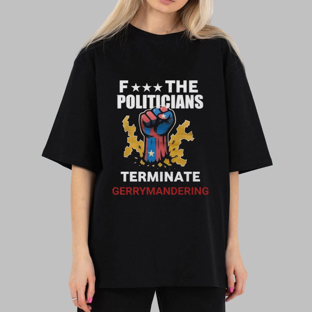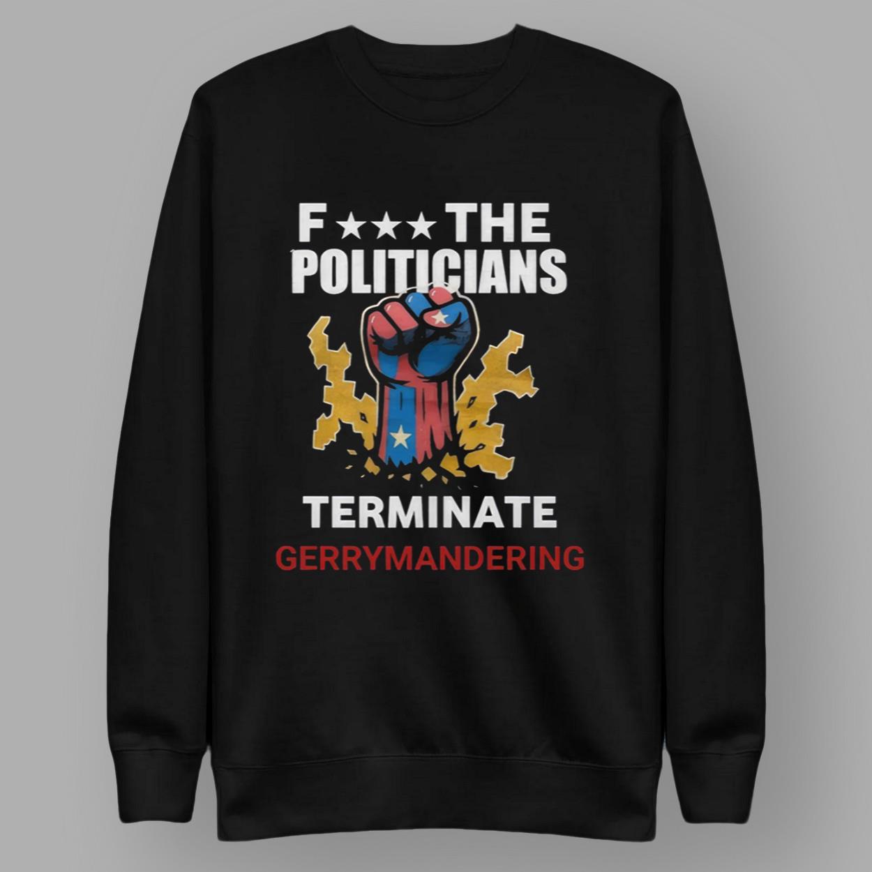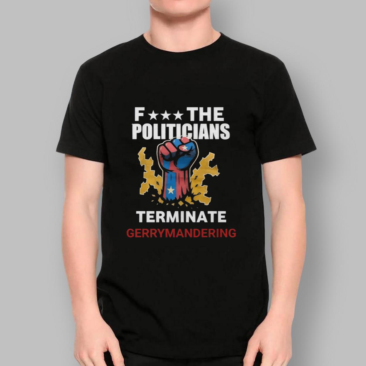 - Crafted from high-quality polyester, the ‘Arnold Schwarzenegger F The Politicians Terminate Gerrymandering Shirt‘ combines a powerful message with exceptional comfort and durability.