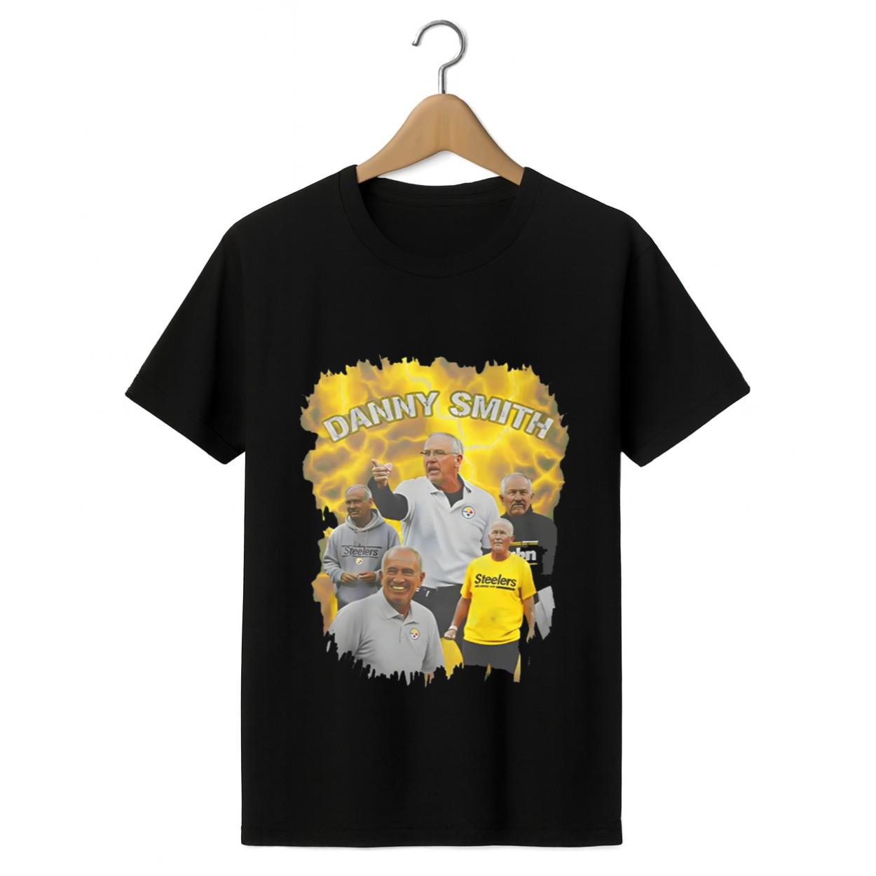 Celebrate the Steelers’ legendary Special Teams Coordinator with the “Danny Smith Legend Tee.” This unique shirt is a tribute to the coach known for his fiery sideline energy, intensity, and passion for the game. Featuring a collage of images of Danny Smith in action and the Steelers colors.