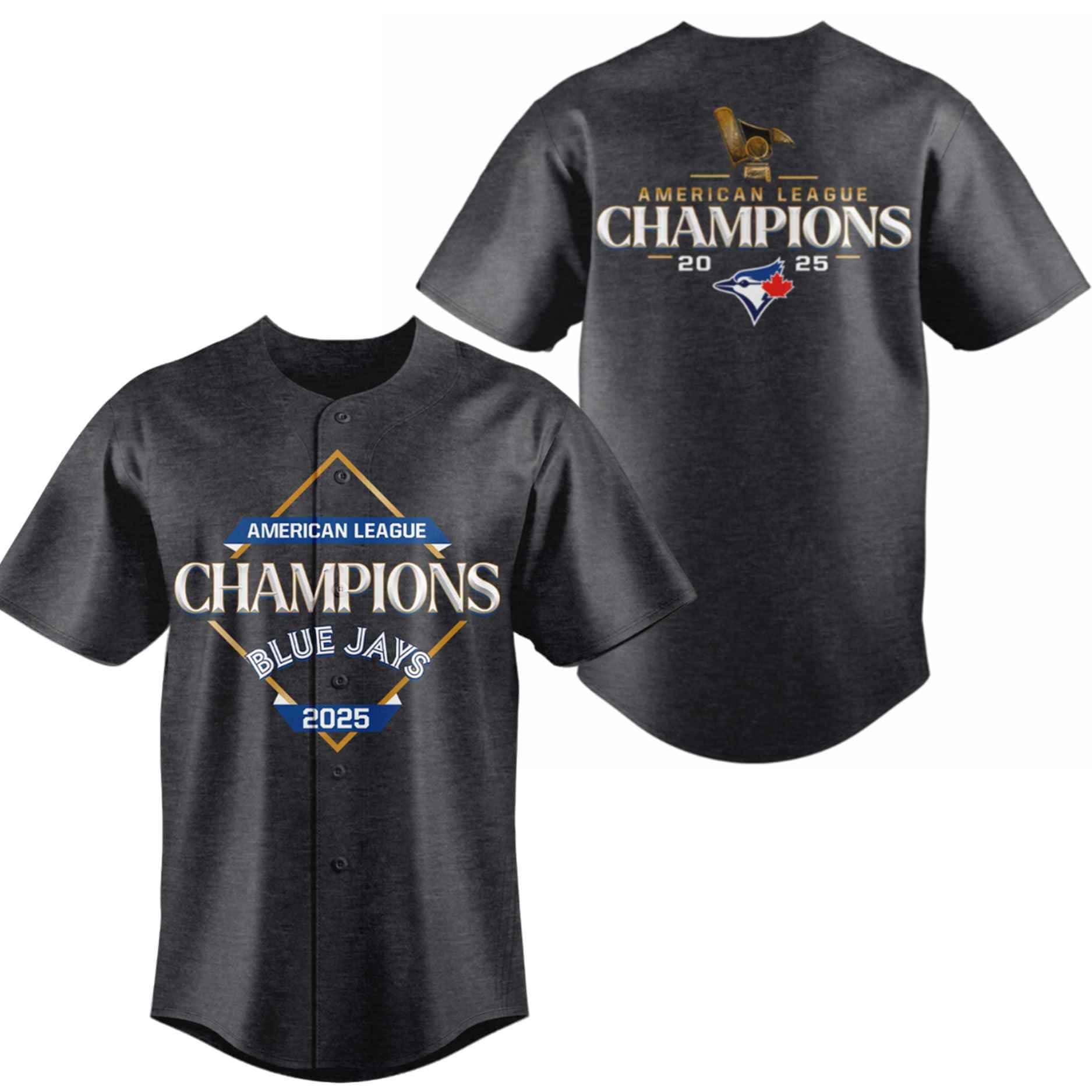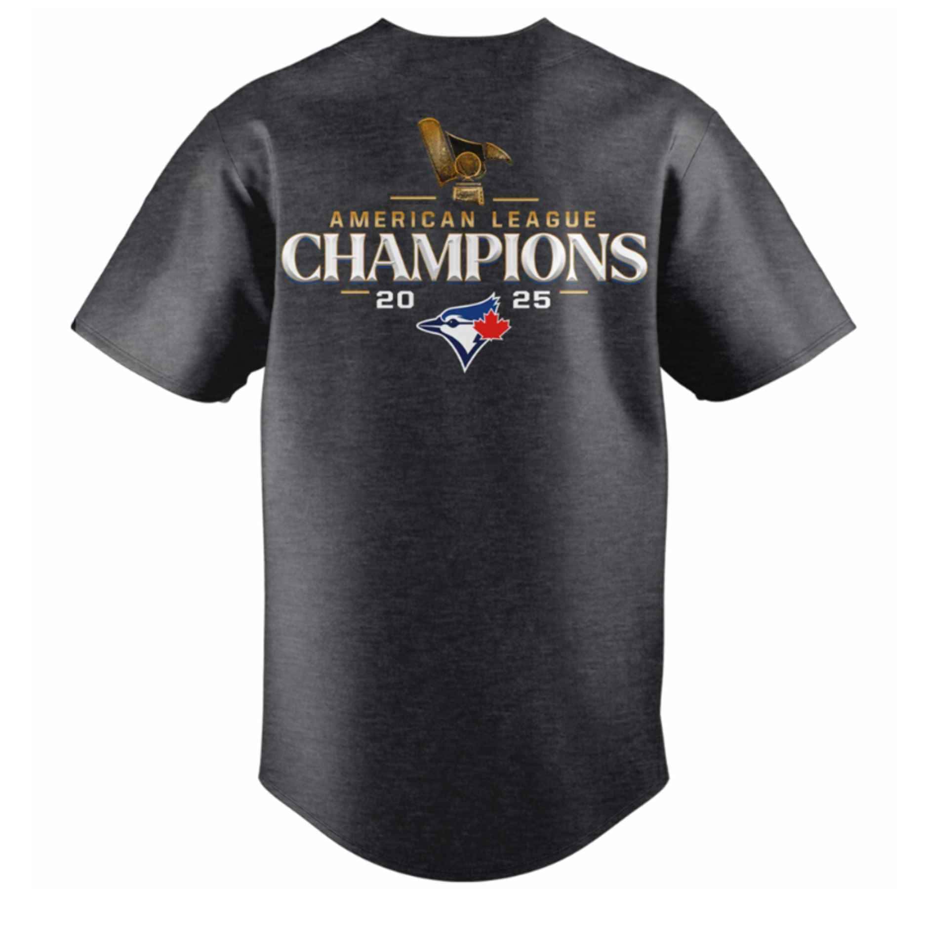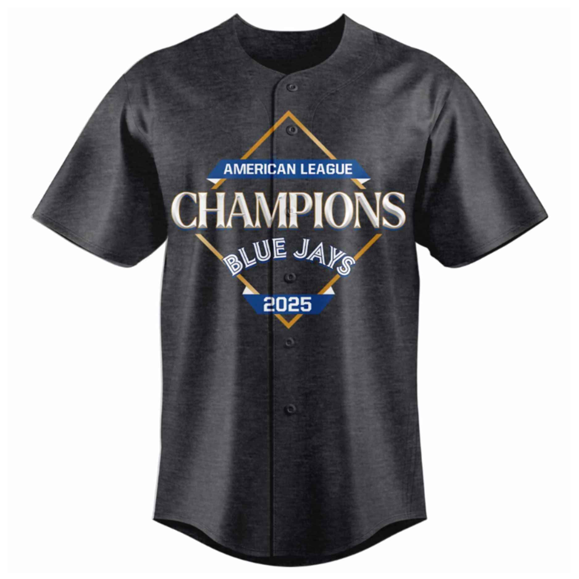 - A bold crest proudly proclaims “AL CHAMPIONS” with the script “BLUE JAYS” and the year “2025” displayed.