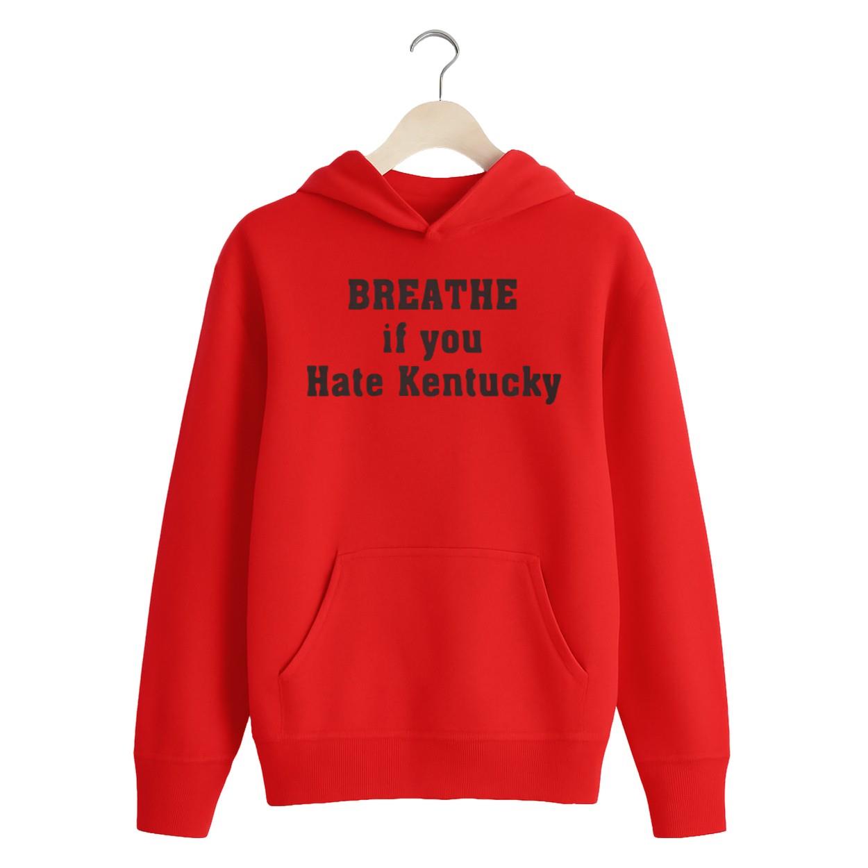 - Design Details: Features a classic crew neck and short sleeves. The text, “BREATHE if you Hate Kentucky,” is printed in a clean, impactful, bold font across the chest, designed for maximum visibility and a great reaction.