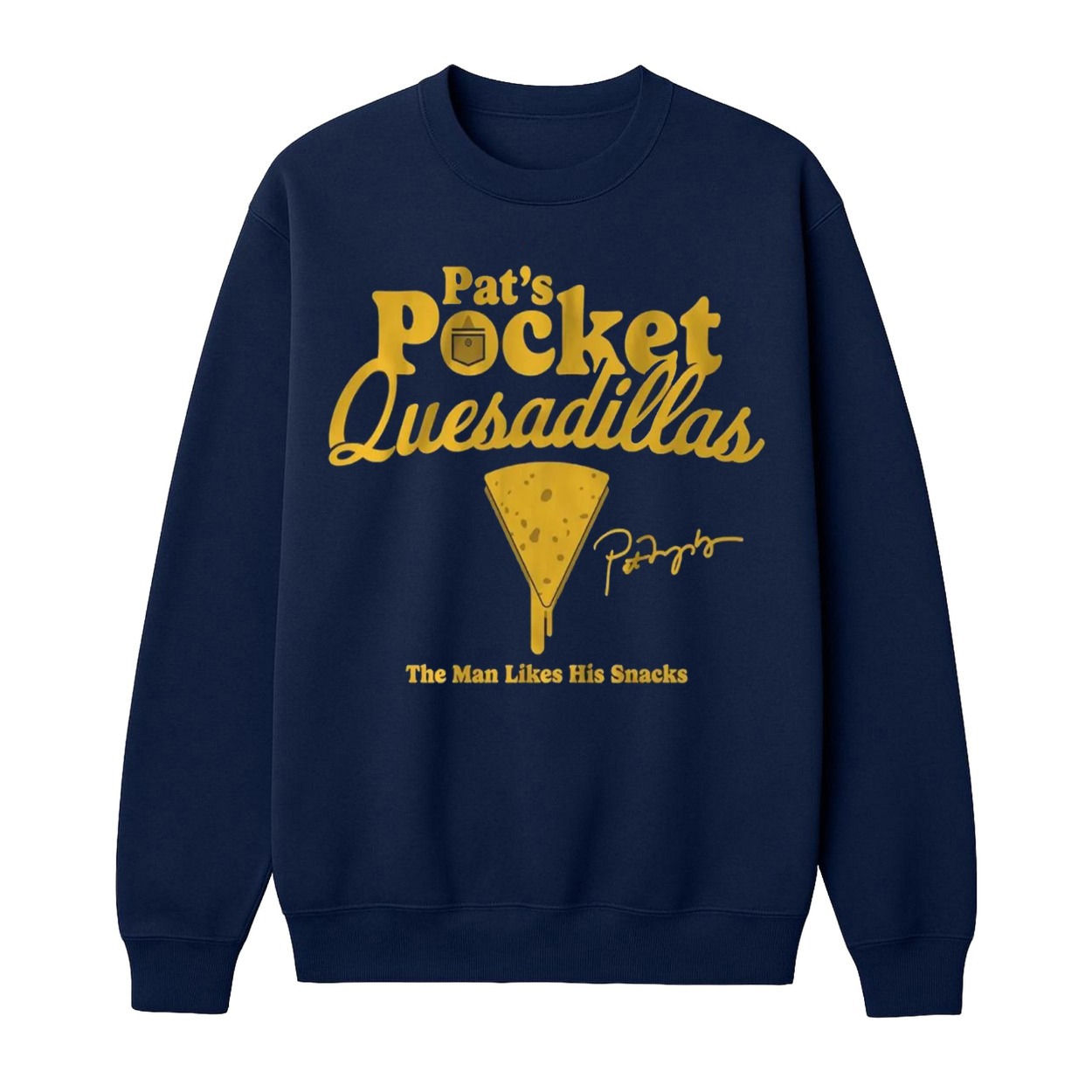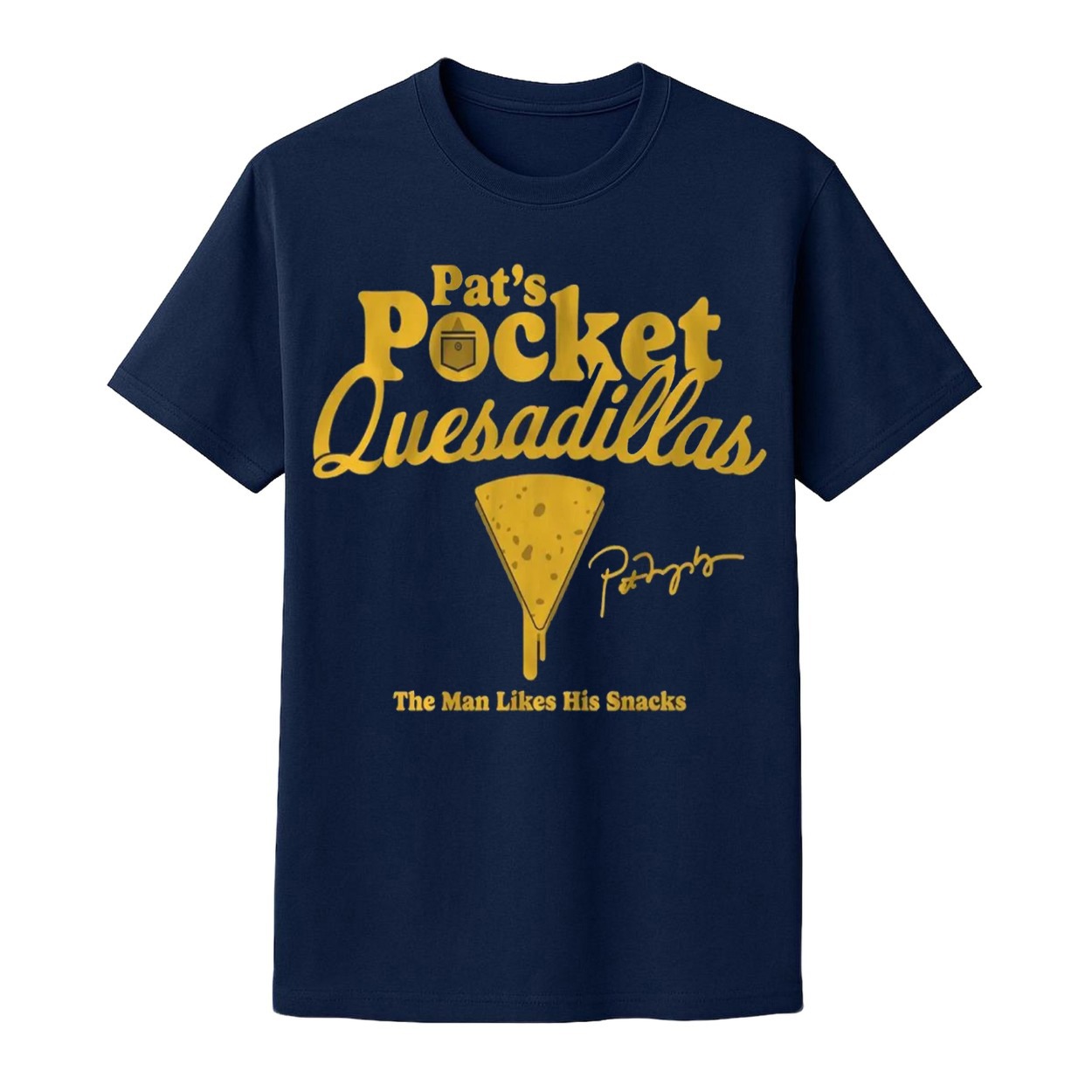 Don’t miss out on this deliciously fun design! Order your Brewers Pat’s Pocket Quesadillas The Man Likes His Snacks Shirt today and snack in style!