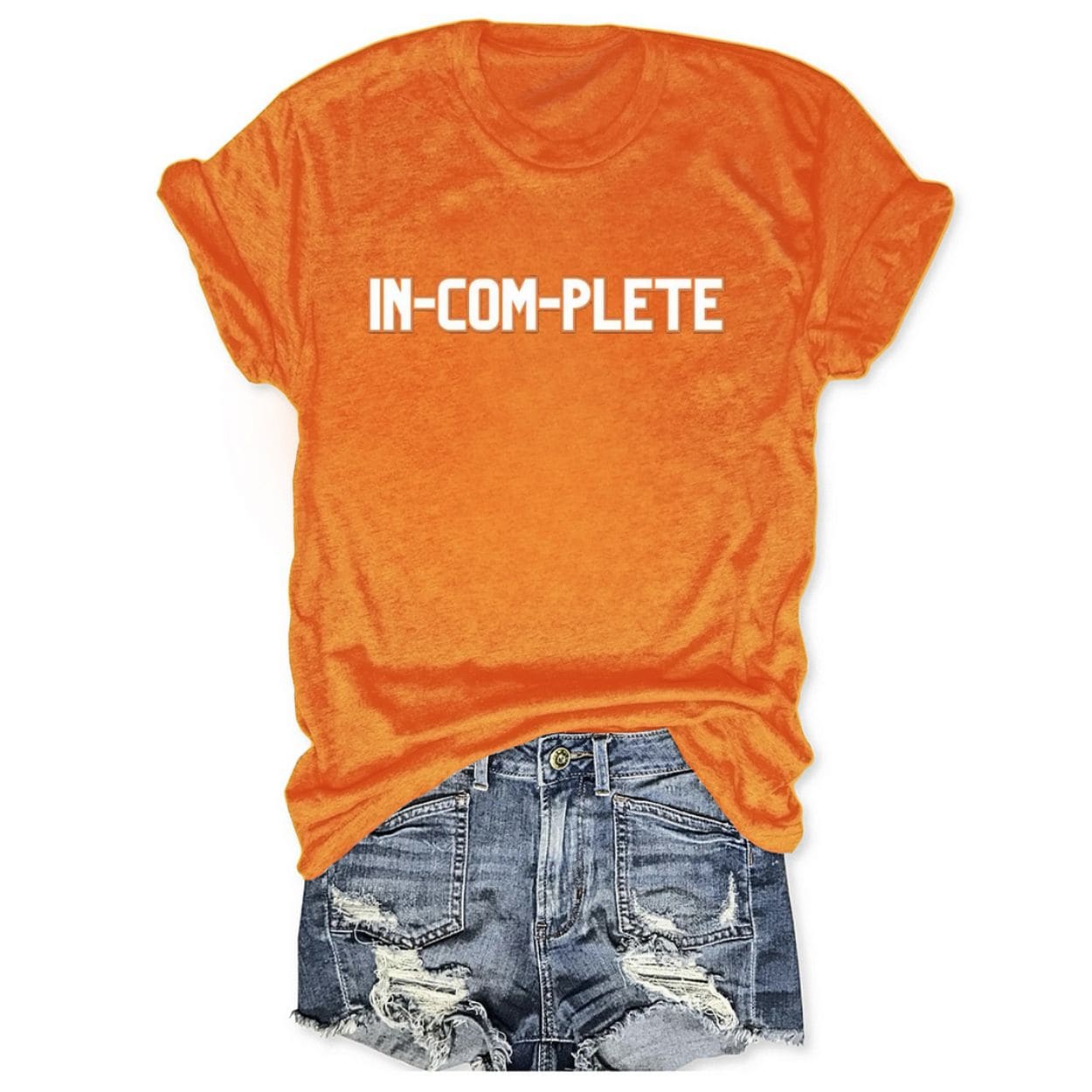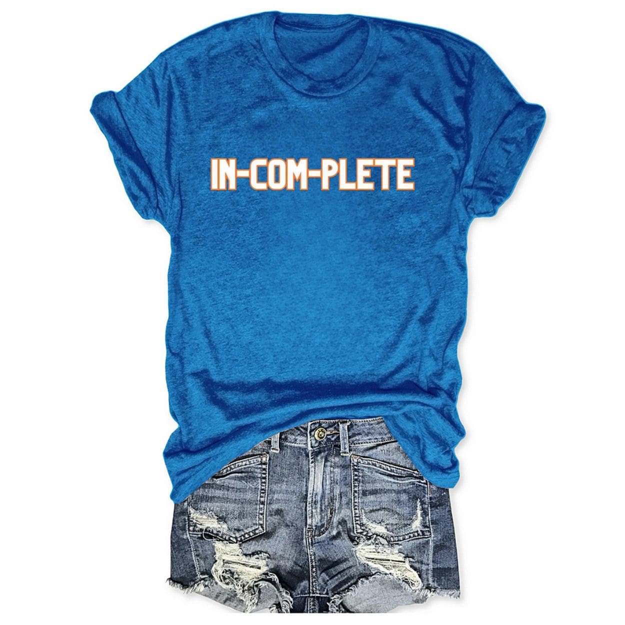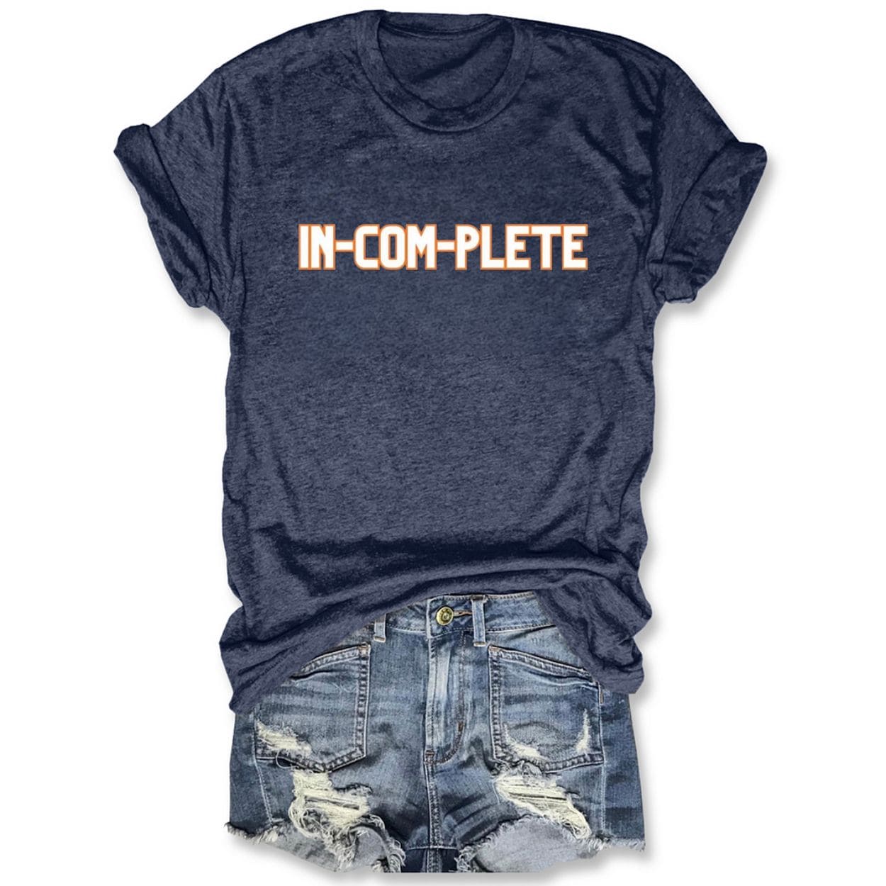 The front features the bold, hyphenated “IN-COM-PLETE” text in team orange and white, immortalizing the fan-favorite stadium chant.