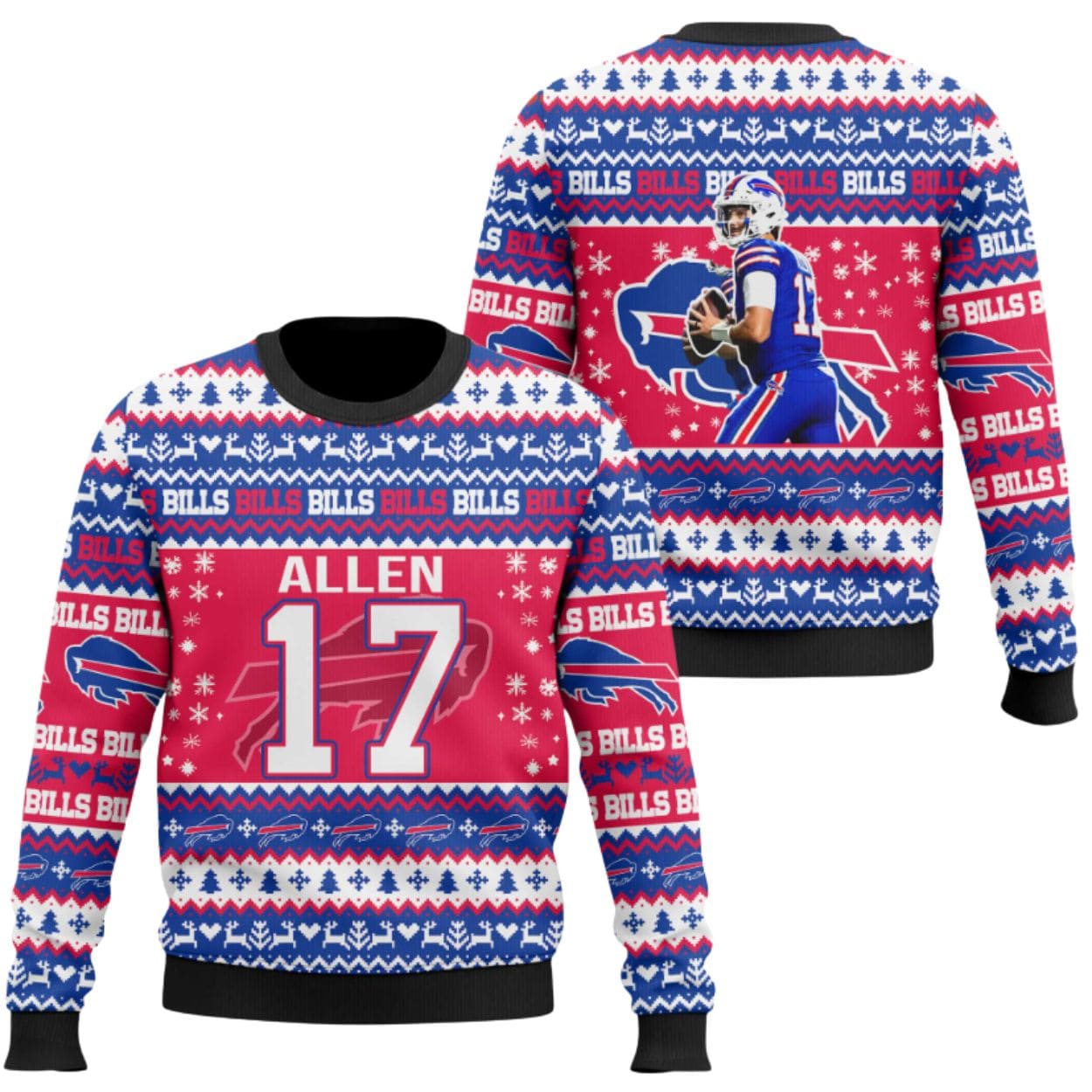 Go Bills, Get Festive: Josh Allen #17 Ugly Christmas Sweater
