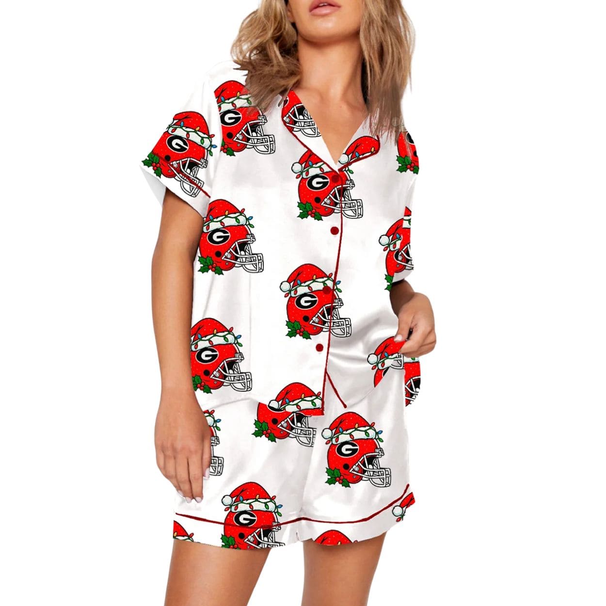 Show your holiday spirit and team pride simultaneously with this adorable Bulldogs Helmets Christmas Pajama Set! Perfect for the dedicated fan, this sleepwear blends the classic comfort of a short-sleeved pajama set with a cheerful, game-day twist that’s ready for the season. Get ready to celebrate championships and the holidays in style!