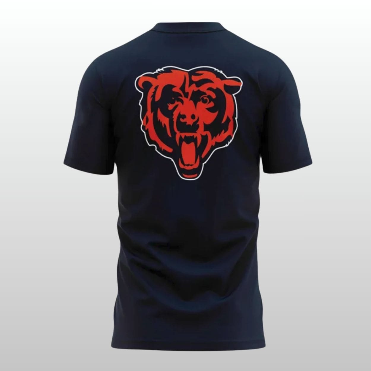 Bold Team Identity: The back showcases a massive, vibrant orange-and-navy Bears mascot head, ensuring you represent the team from every angle.