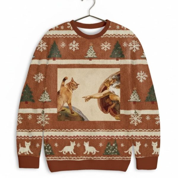 Divine Feline: The Cat God “Creation of Adam” Meme Sweater