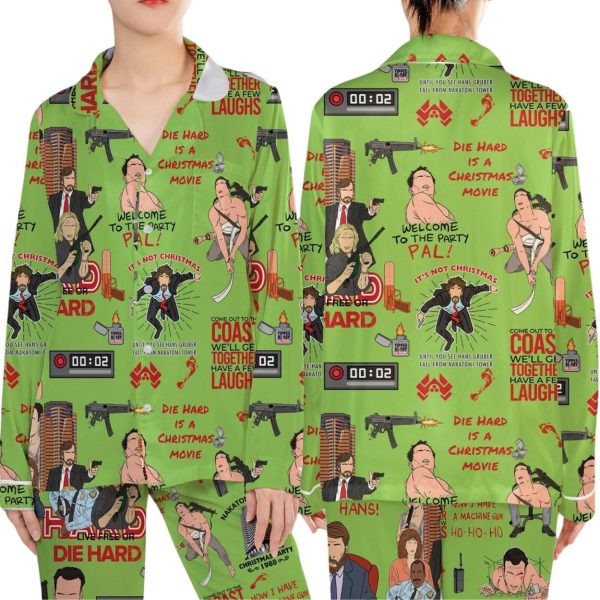 Settle in for a long winter’s night of action, adventure, and holiday cheer with the Christmas Nakatomi Plaza Pajamas Set! This unique, all-over print sleepwear definitively settles the debate: Die Hard is a Christmas movie. Featuring all your favorite moments and quotes, this set is perfect for fans of John McClane, Hans Gruber, and the chaos that defines a true holiday classic.