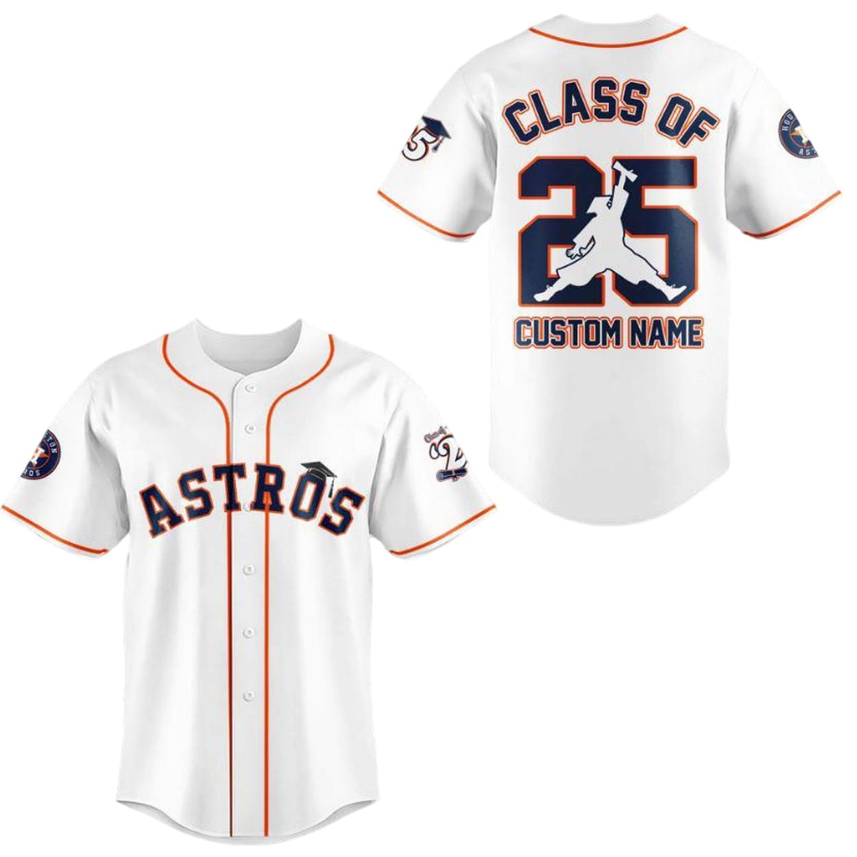 - Design Details: The front of the jersey features the Astros logo, while the back showcases “Class Of 25” along with a customizable name option. This allows graduates to personalize their jersey with their own name, making it a special keepsake for the class of 2025.