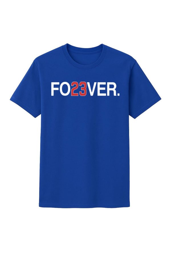 - Available in sizes S to 5XL, this eye-catching blue tee features a bold “FO23VER” design with “23” in vibrant red, paying homage to the legendary Ryne Sandberg.
