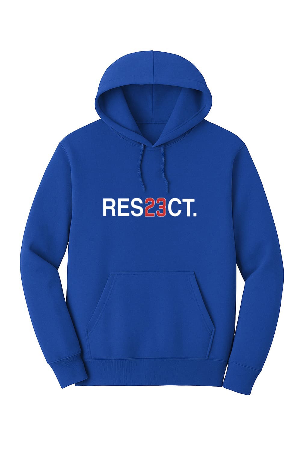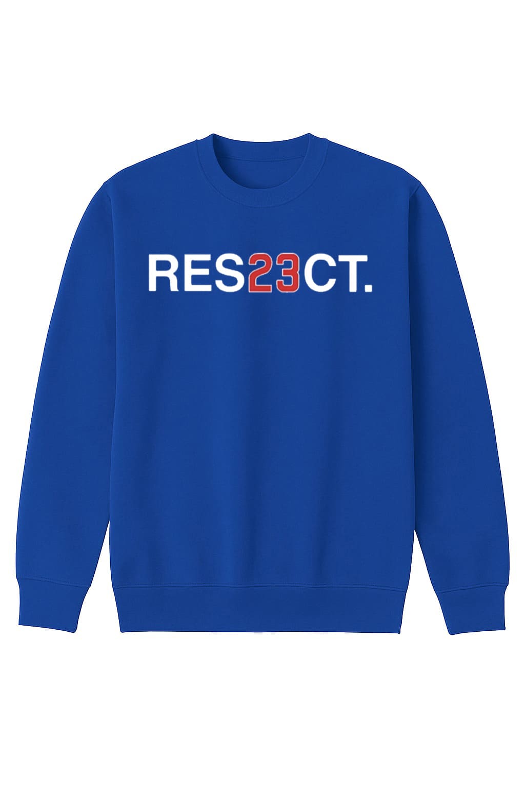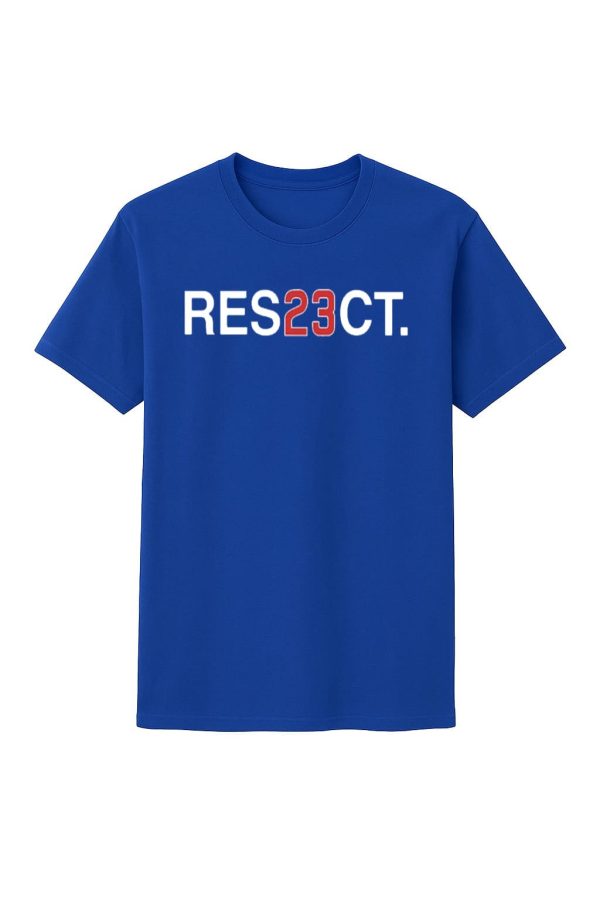 - The shirt showcases a striking “RES23CT” print, with the “23” highlighted in red for a dynamic look, set against a solid blue background.