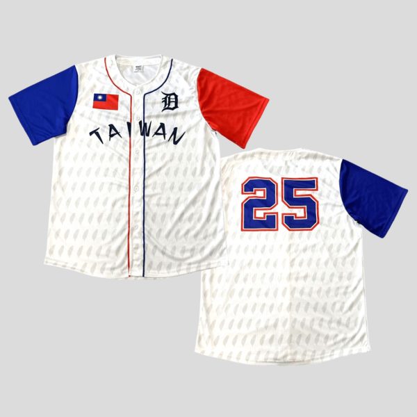 Celebrate the Detroit Tigers’ 2025 Taiwanese Heritage with this stunning Detroit Tigers 2025 Taiwanese Heritage Jersey Giveaway! This white jersey features a bold design with navy and red accents, including the iconic “D” logo, the number 25 on the back, and a Taiwanese flag on the chest. The sleeves showcase navy and red panels, while the front proudly displays “TAIWAN” in striking lettering, complemented by a subtle leaf pattern. Available in sizes S to 6XL, this jersey is crafted from lightweight polyester, offering a comfortable, breathable fit perfect for game days or cultural pride events. Ideal for fans honoring Taiwanese heritage in 2025, this limited-edition giveaway is a vibrant tribute. Get yours now!