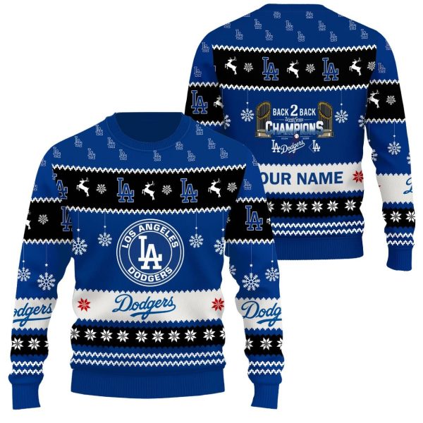 Dynasty Dazzle: Personalized Dodgers B2B World Series Ugly Sweater