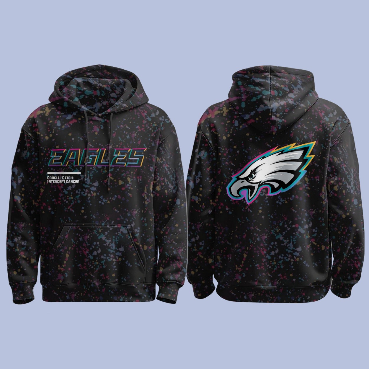 Design: Eye-catching, colorful splatter effect with Eagles logo and Crucial Catch branding