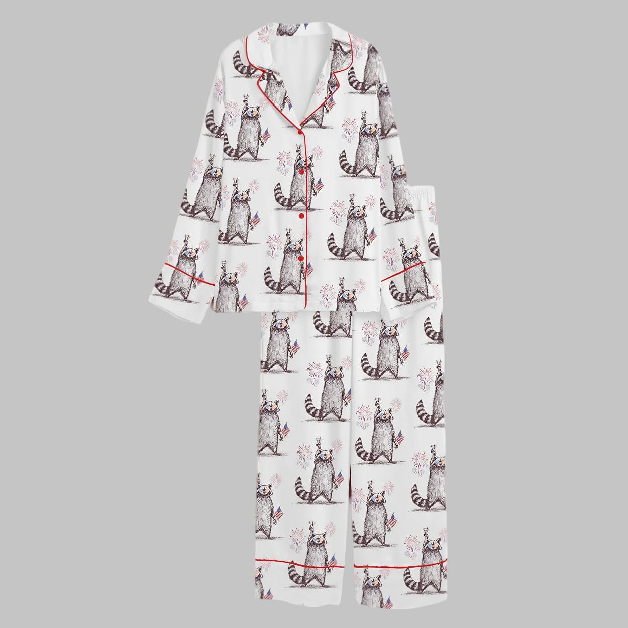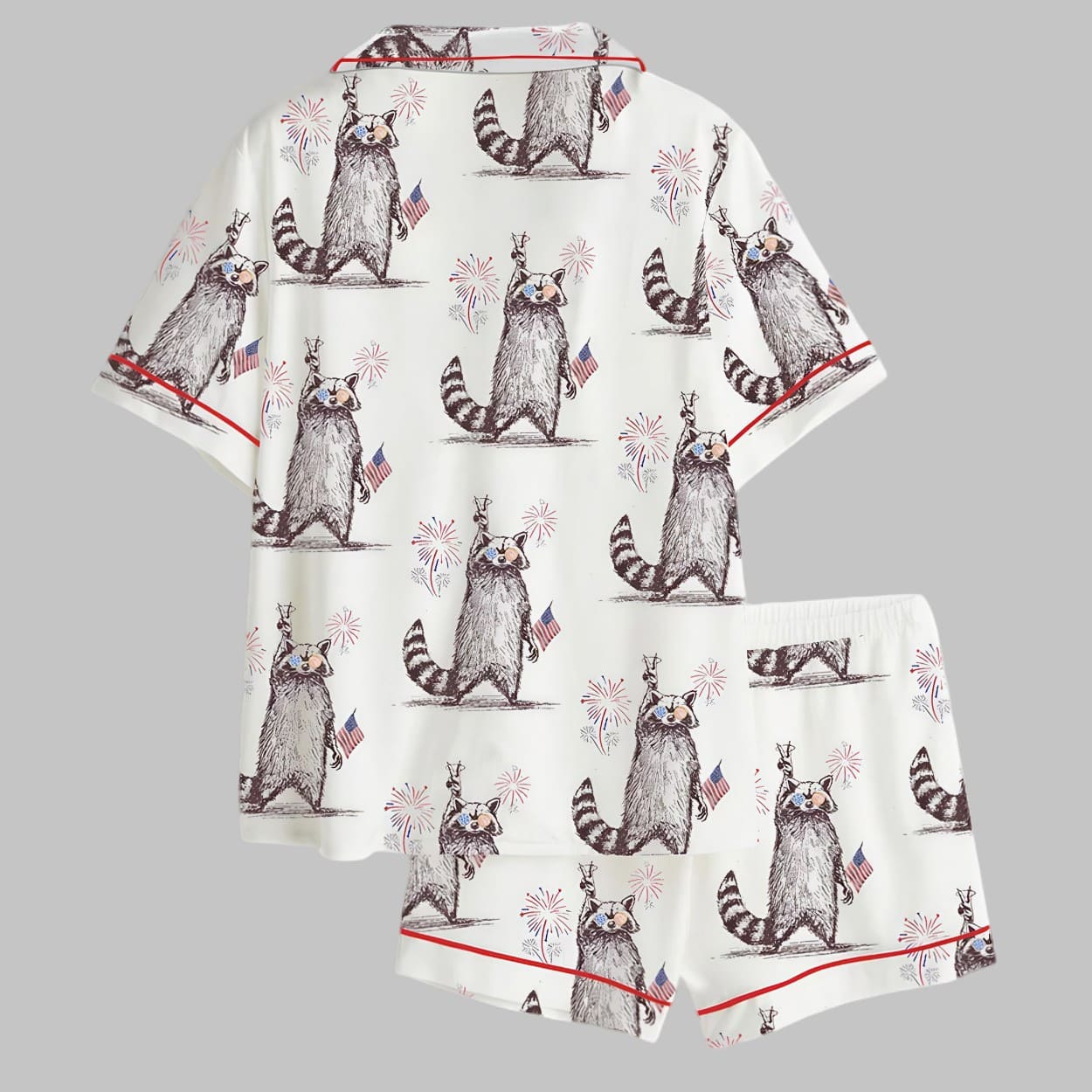 Feral But Free Fireworks Summer Raccoon 4th Of July Print Pajama Set Overview