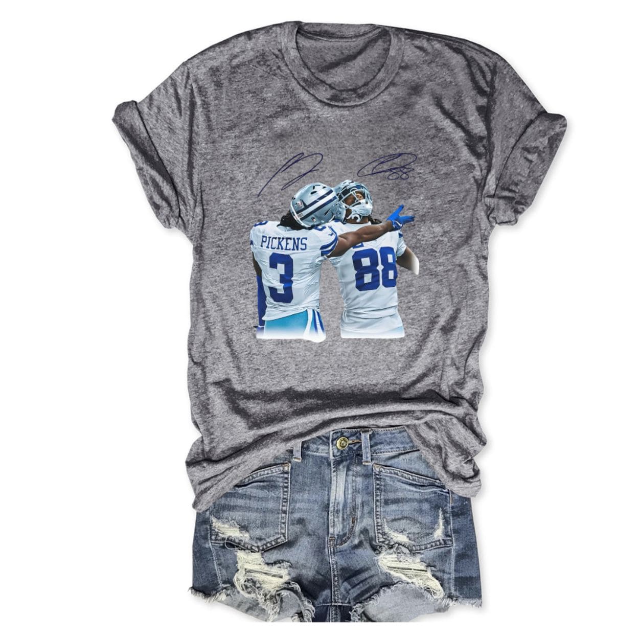 The George Pickens and CeeDee Lamb Dallas Tee captures the excitement of the Cowboys’ powerful new duo, featuring a high-quality graphic that is essential wear for every dedicated fan.