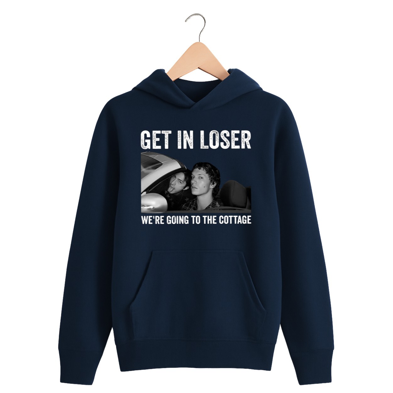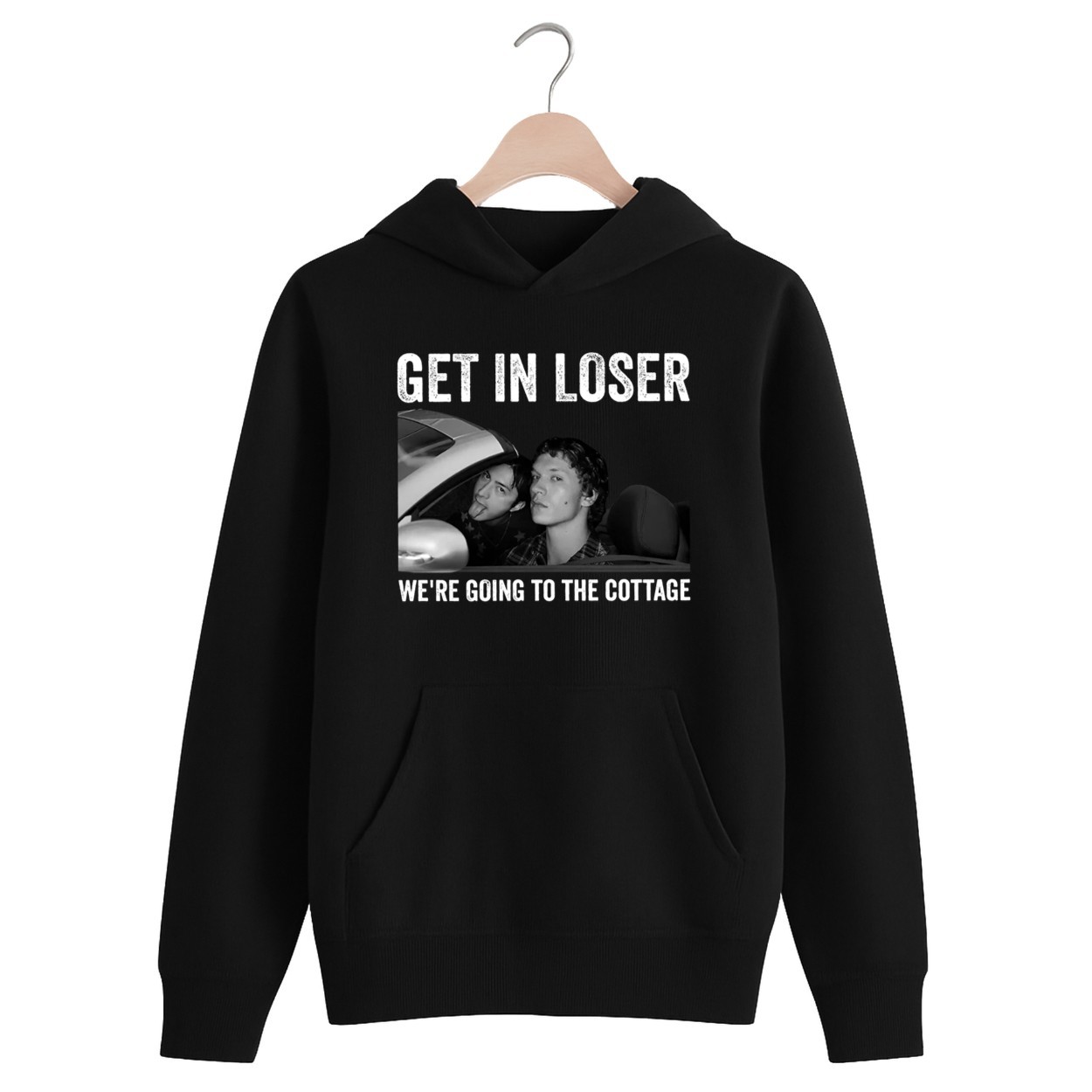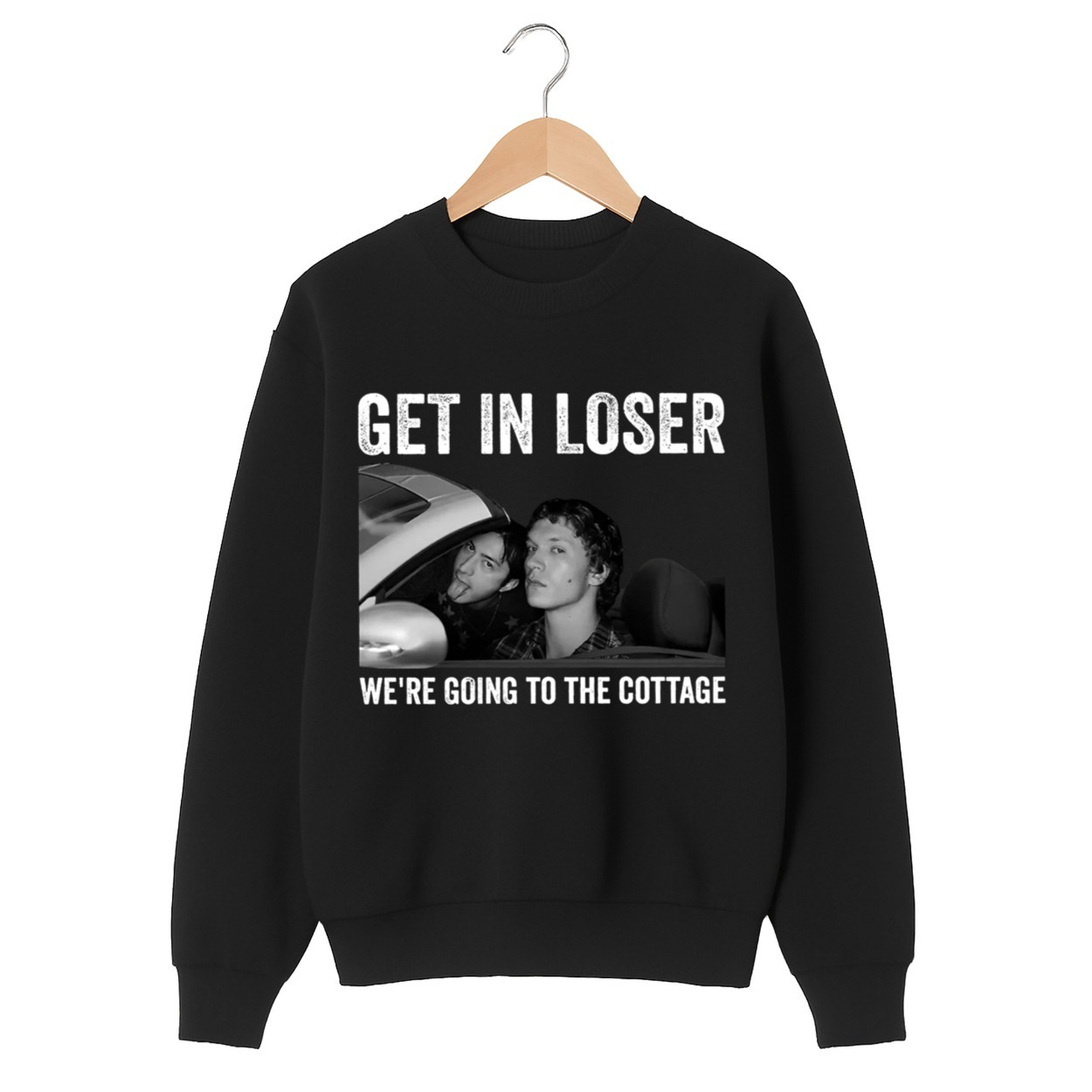 The “Get In Loser” slogan is a hilarious nod to a famous movie quote, reinvented for your next cottage trip.