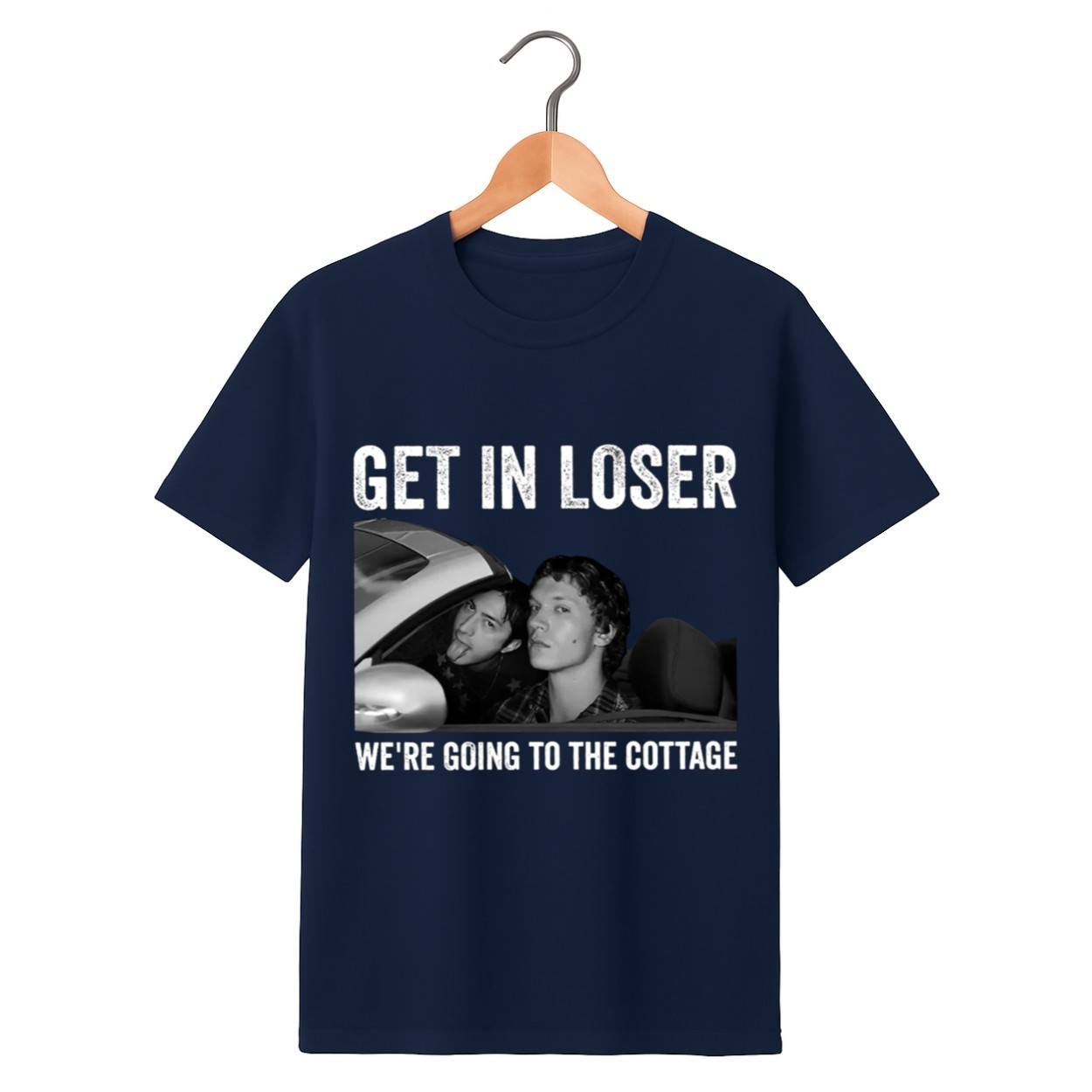 Get ready for the ultimate weekend getaway with the Get In Loser We’re Going To The Cottage Williams & Storrie Shirt. This trendy graphic tee combines a classic pop-culture movie reference with a modern, laid-back vibe, featuring a high-quality black-and-white photograph of the iconic duo.