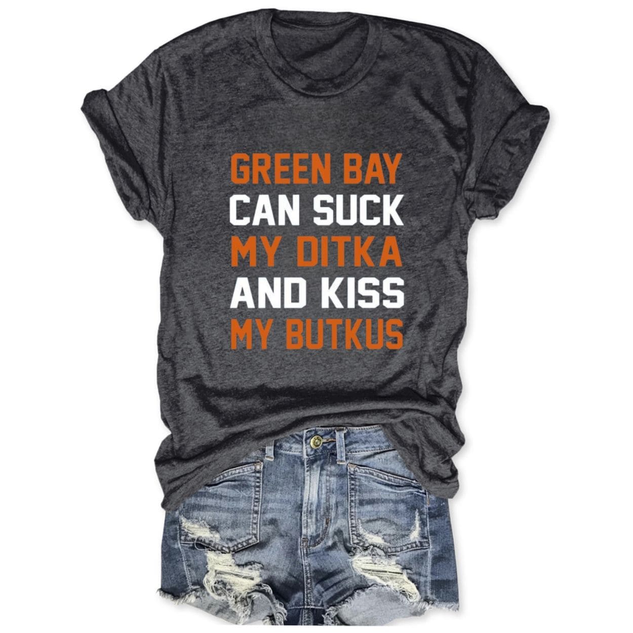 The ‘Green Bay Can Suck My Ditka And Kiss My Butkus Tee‘ is more than just fan gear; it’s a legendary battle cry, invoking the spirits of two of the greatest, toughest figures in Chicago football history—Coach Ditka and Linebacker Butkus. Perfect for game day, especially when the green and gold come to town.