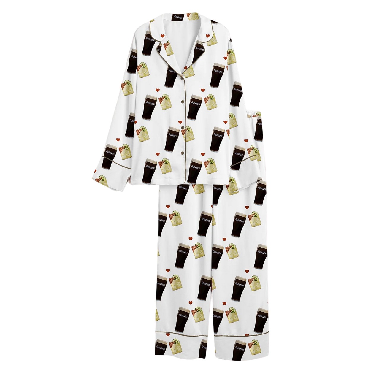 Cozy up in Guinness & margarita satin PJs! XS-4XL, polyester-spandex, fun print. Soft & stretchy—perfect for sleep. Order now!