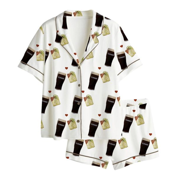- Available in sizes XS to 4XL, this luxurious set features a crisp white satin design adorned with playful Guinness pints and spicy margarita glasses, accented with hearts and lime slices.