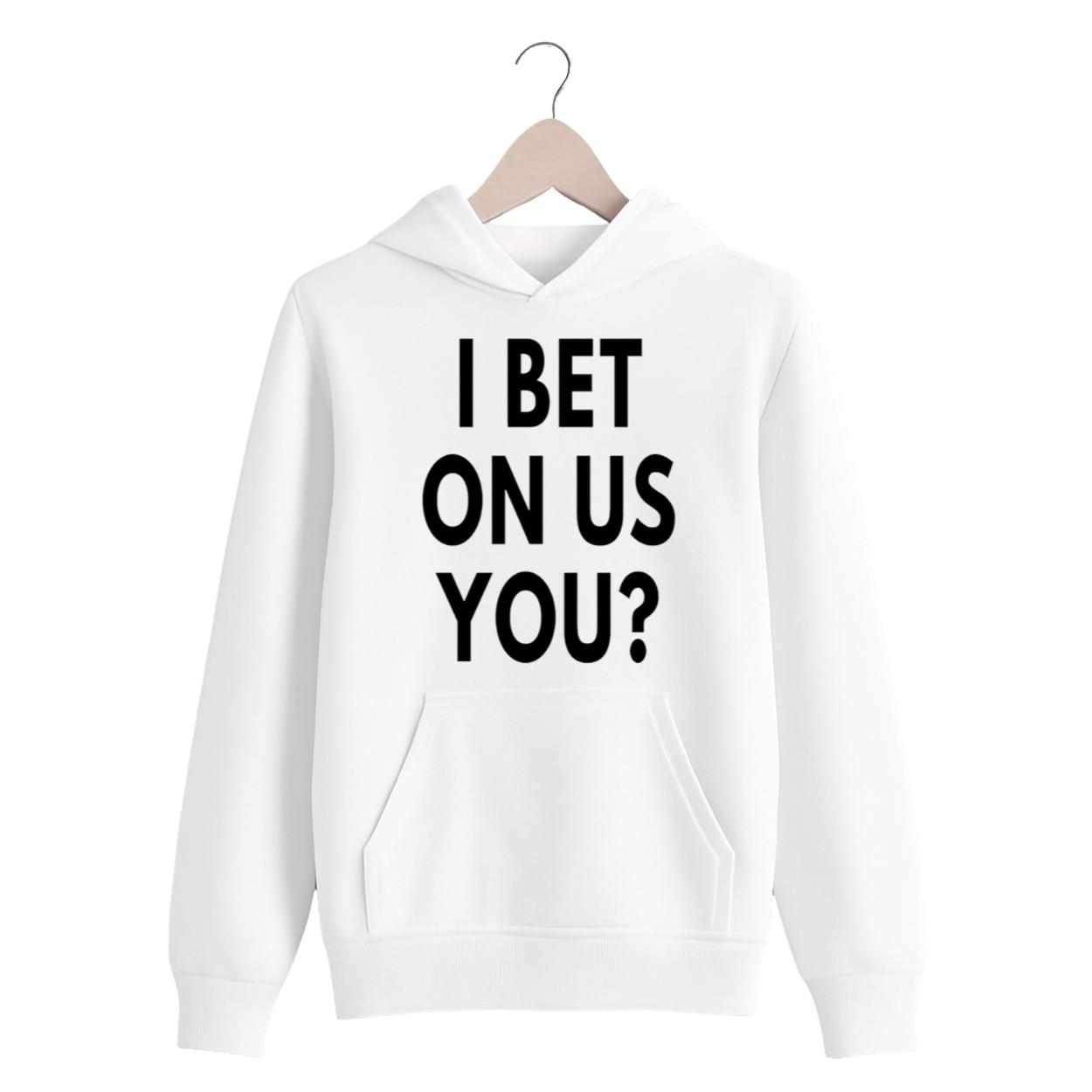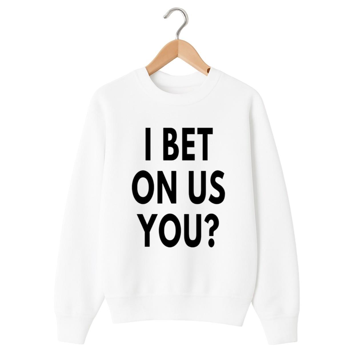 | Design Feature | Single-sided graphic: “I BET ON US. YOU?” printed in bold black block letters on a white tee. |
