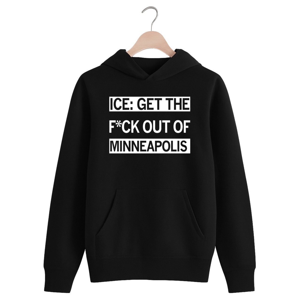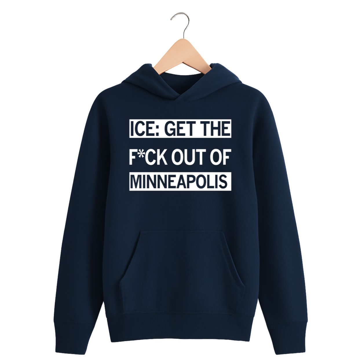 The bold “ICE: GET THE F*CK OUT OF MINNEAPOLIS” text is set in a striking boxed format for maximum visibility.