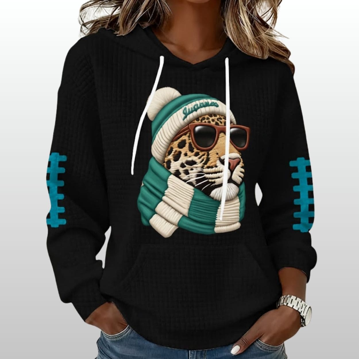 Why You Will Love the Jaguars Mascot Wearing Beanie Football Print Waffle Hoodie?