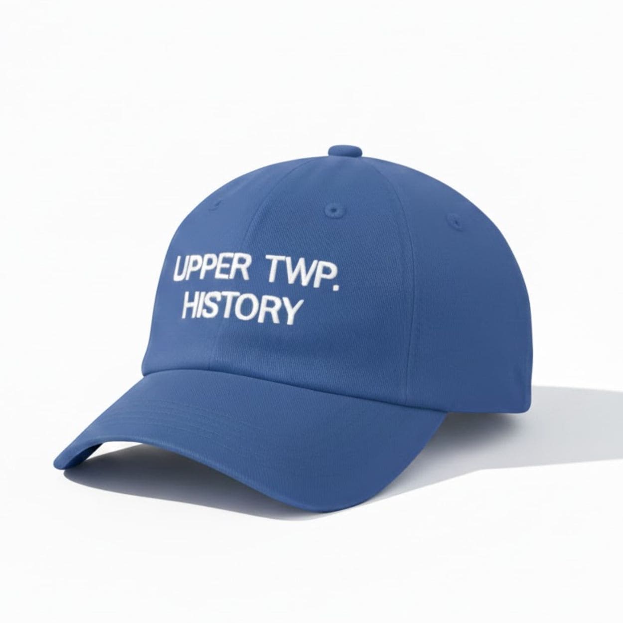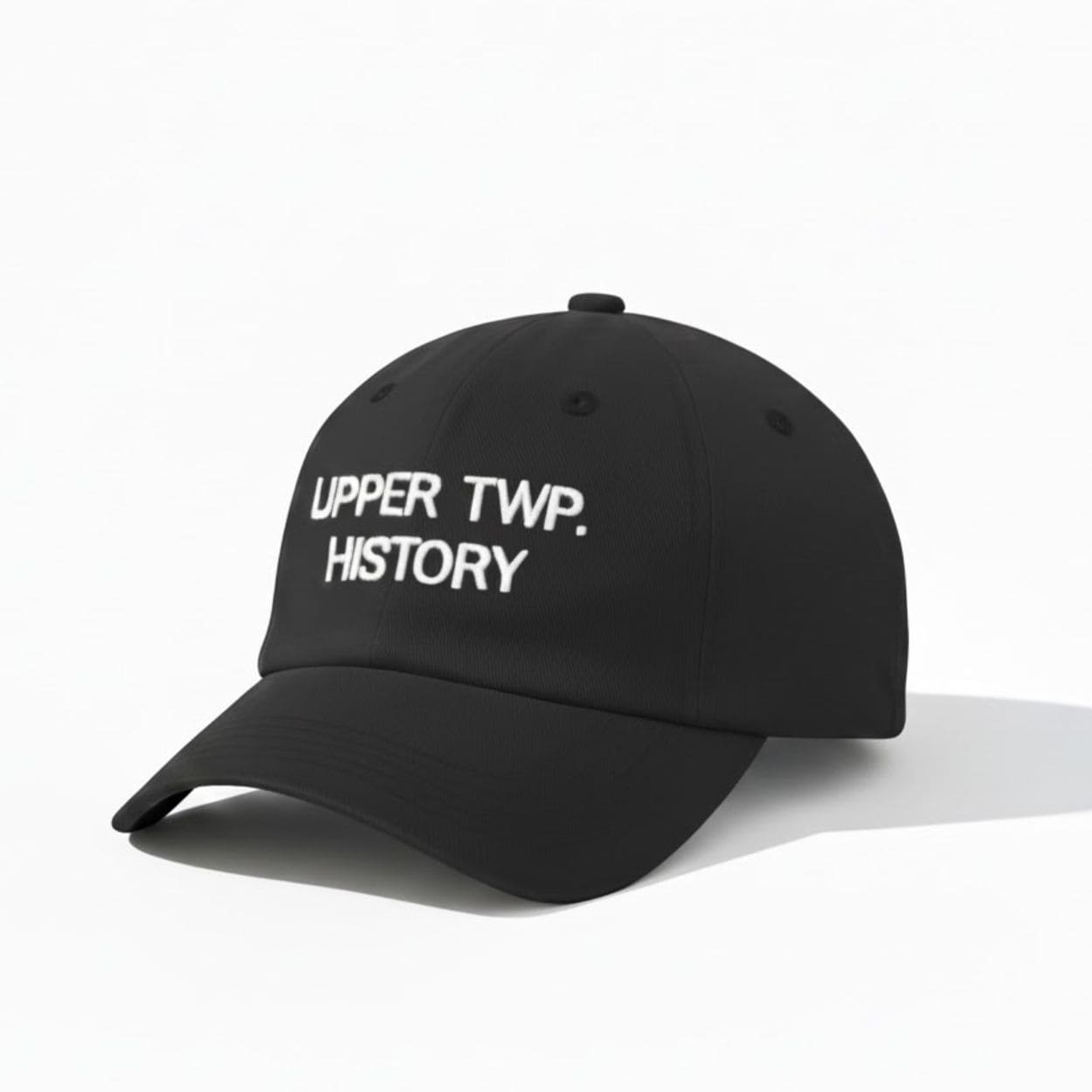 Intriguing Text: The front panel is embroidered with the simple, declarative statement: “UPPER TWP. HISTORY” in clean, contrasting white stitching.