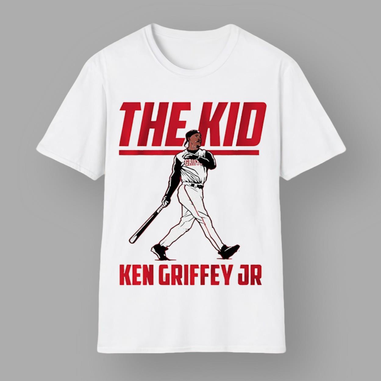 The Ken Griffey Jr Cincinnati The Kid Shirt is a tribute to one of baseball’s greatest players, Ken Griffey Jr. This shirt features a striking design that captures the essence of Griffey’s iconic presence on the field, making it a must-have for any baseball fan.