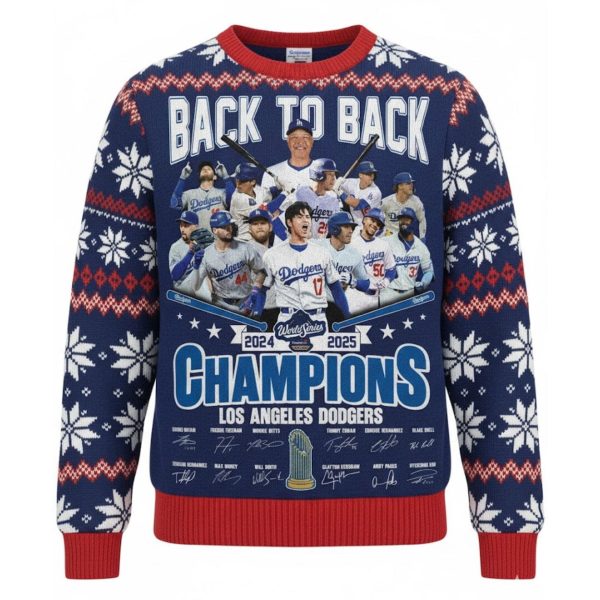 The LA Dodgers Back To Back World Series Champions 2024-2025 Ugly Christmas Sweater