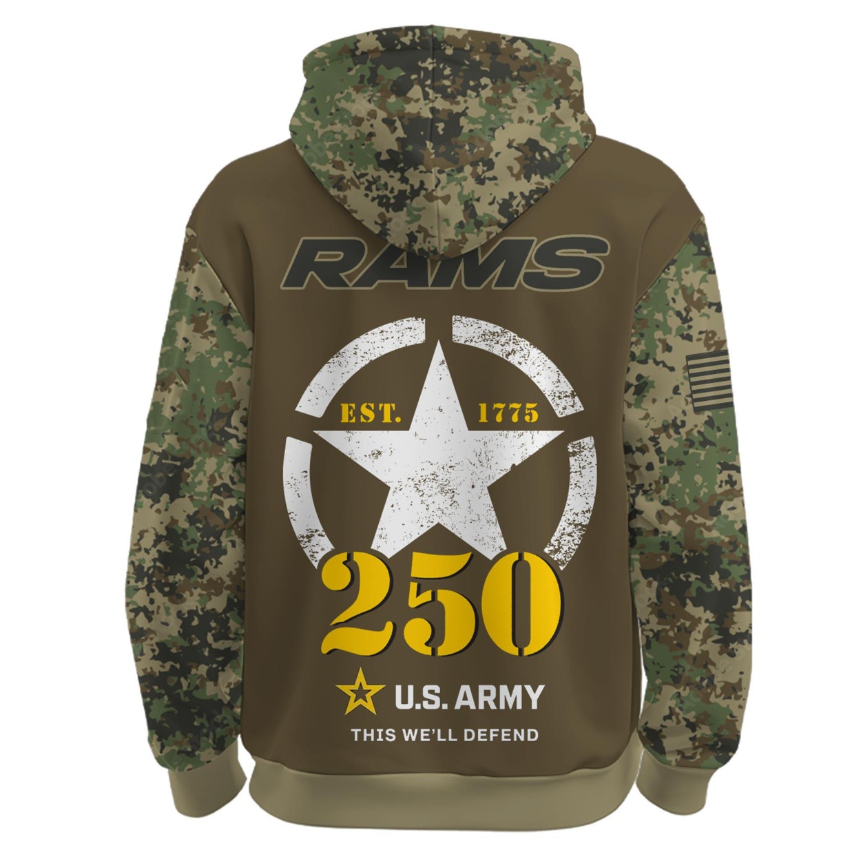 Unite Fandom and Patriotism with the LA Rams US Army 250th Birthday Hoodie
