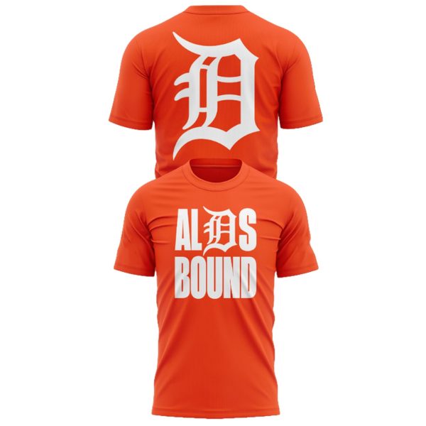 - Front: Features a powerful, stacked graphic with the team’s iconic script “D” integrated into the text “ALDS BOUND.” The crisp white lettering against the orange shirt makes an undeniable statement of postseason readiness.