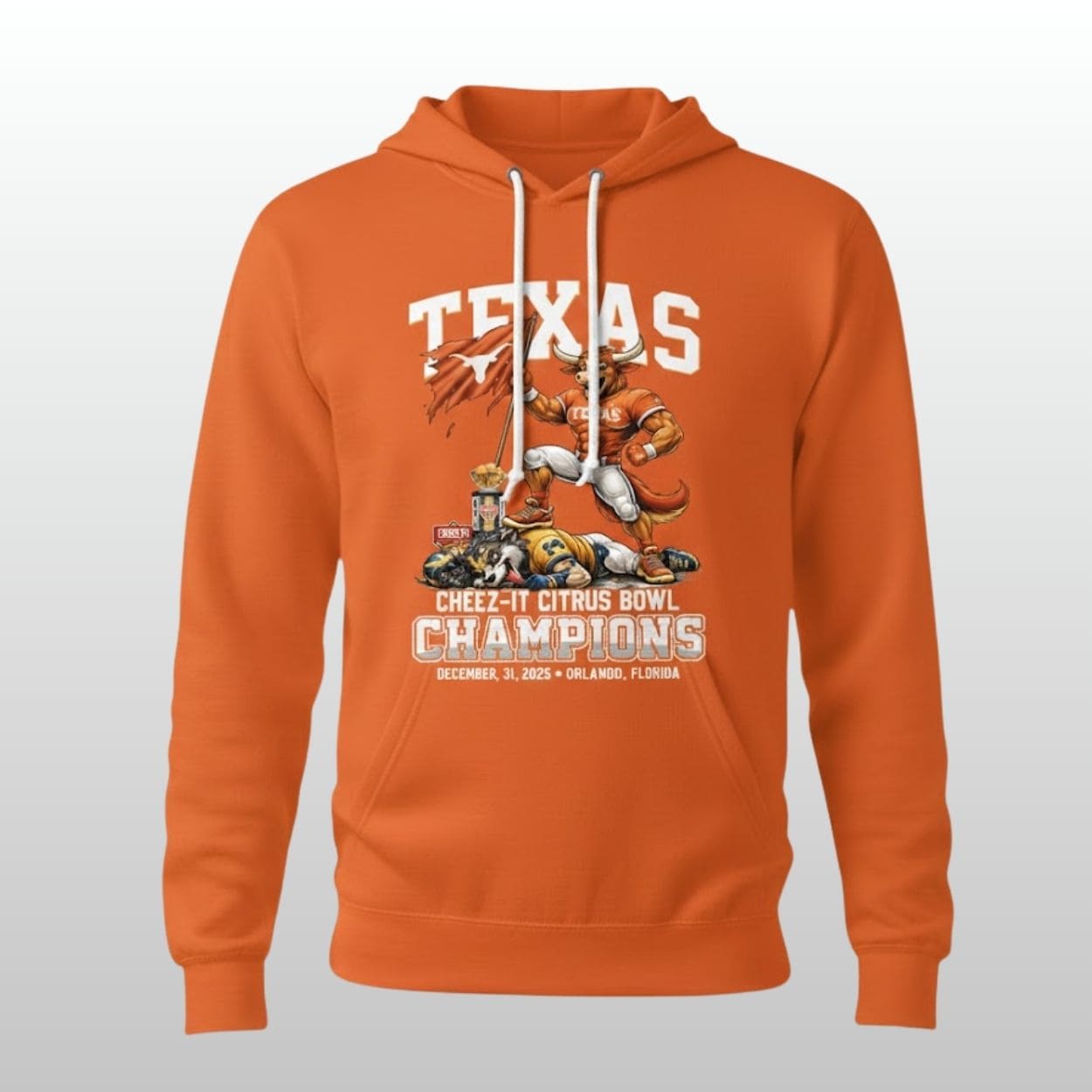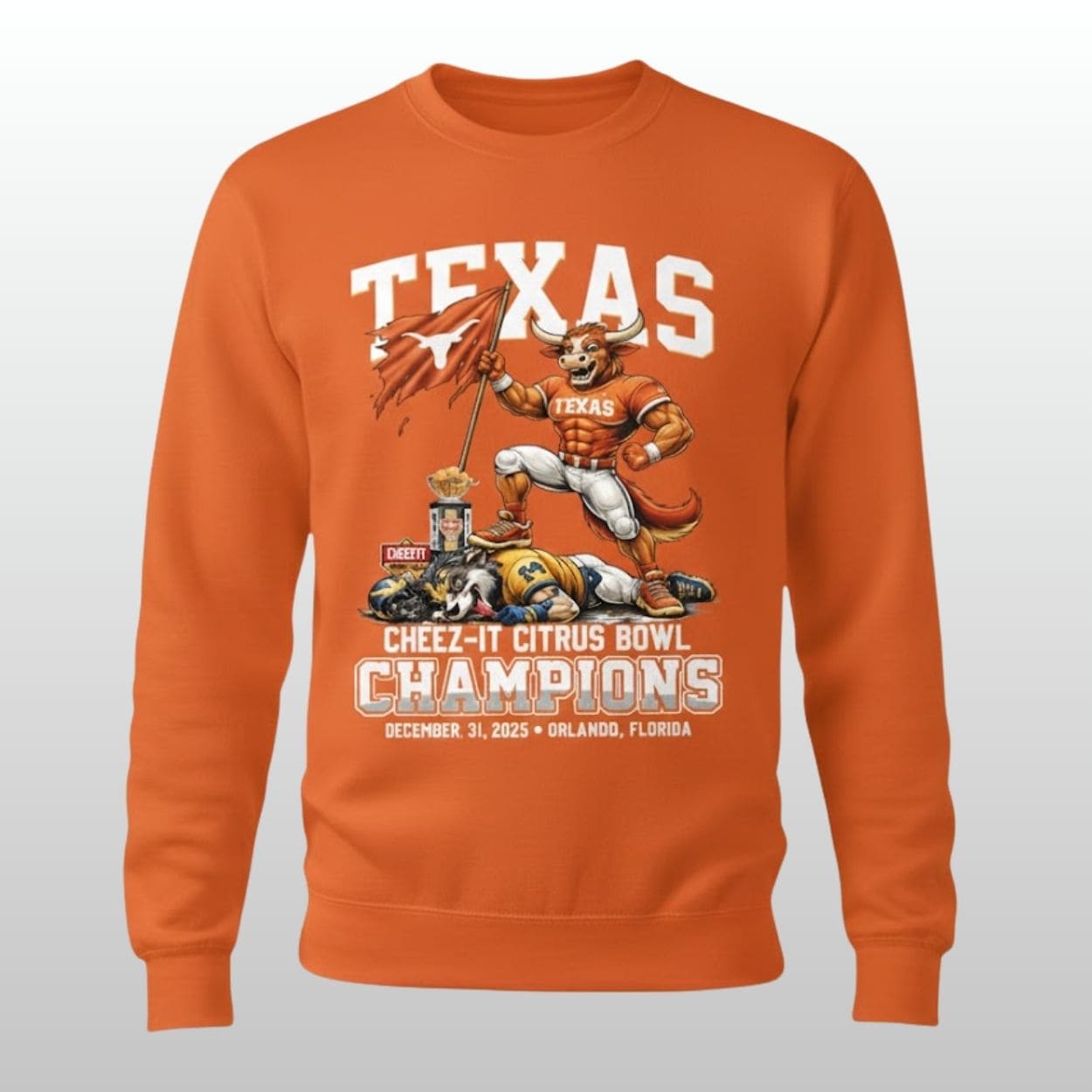 Celebrate a massive postseason victory with the Longhorns Football 2025 Citrus Bowl Champions Shirt. This commemorative tee captures the spirit of the Longhorns’ triumph on December 31, 2025, in Orlando, Florida. Featuring a bold, custom illustration of the Longhorns’ mascot standing victorious, it is the perfect way for any dedicated fan to wear their team pride following an unforgettable bowl season.