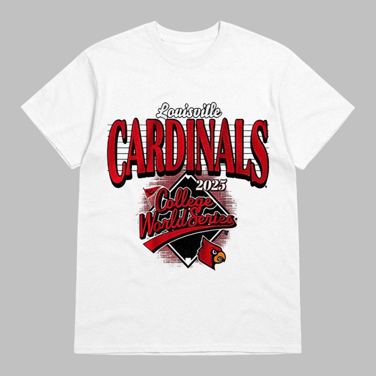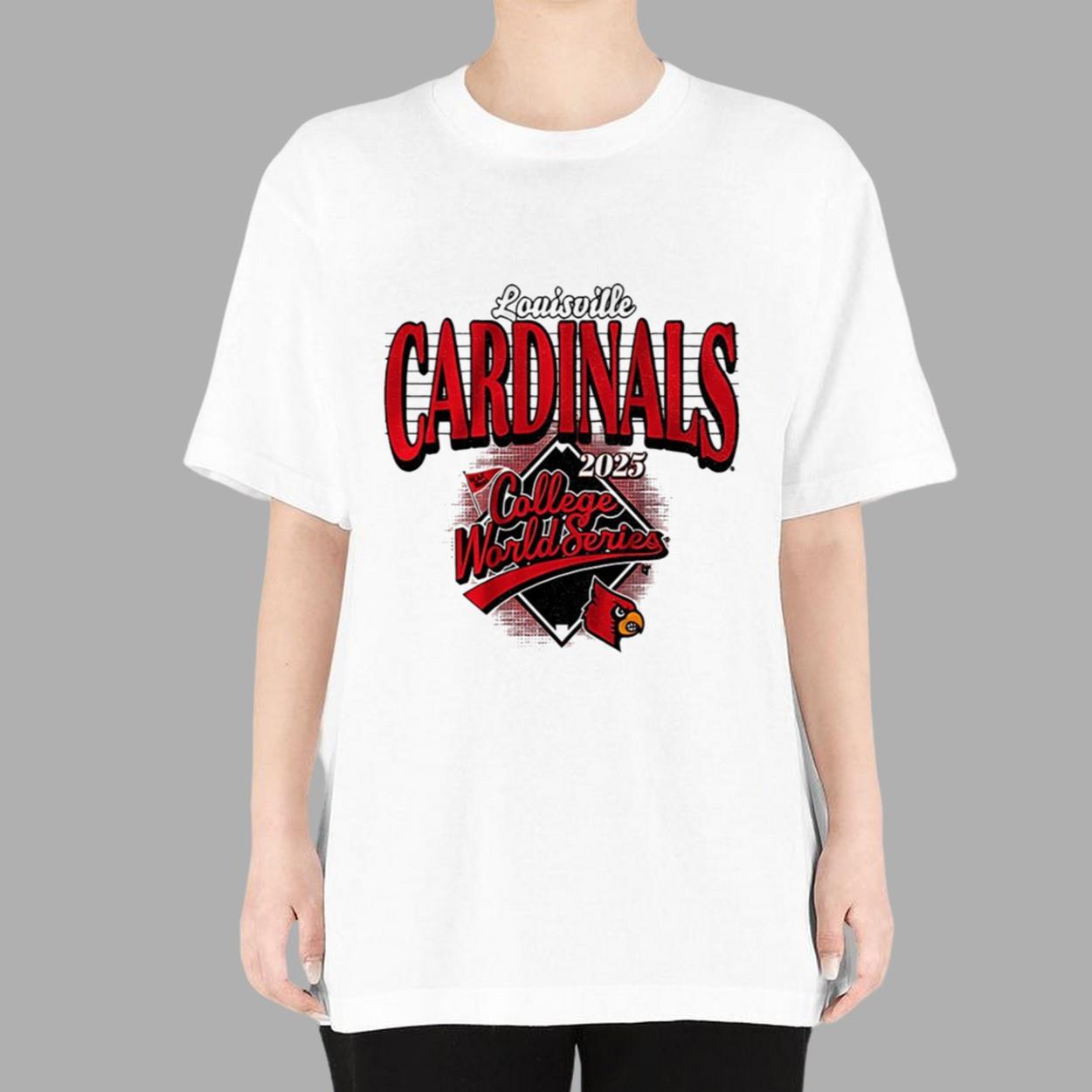 Elevate your game-day experience with the Louisville Cardinals Baseball 2025 College World Series Shirt! This crisp white tee features a bold “Louisville Cardinals” design with the iconic Cardinal logo and “2025 College World Series” emblem, celebrating the team’s historic run. Available in sizes S to 5XL, this shirt is crafted from a comfortable cotton-polyester blend, blending softness with durability for any occasion.