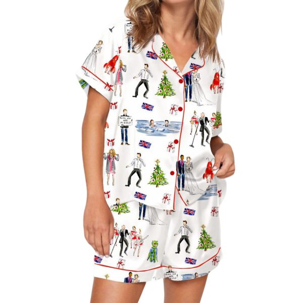 Get ready to embrace the holiday spirit with the Love Actually Christmas Silky Satin Pajama Set, a perfect blend of comfort and festive flair.