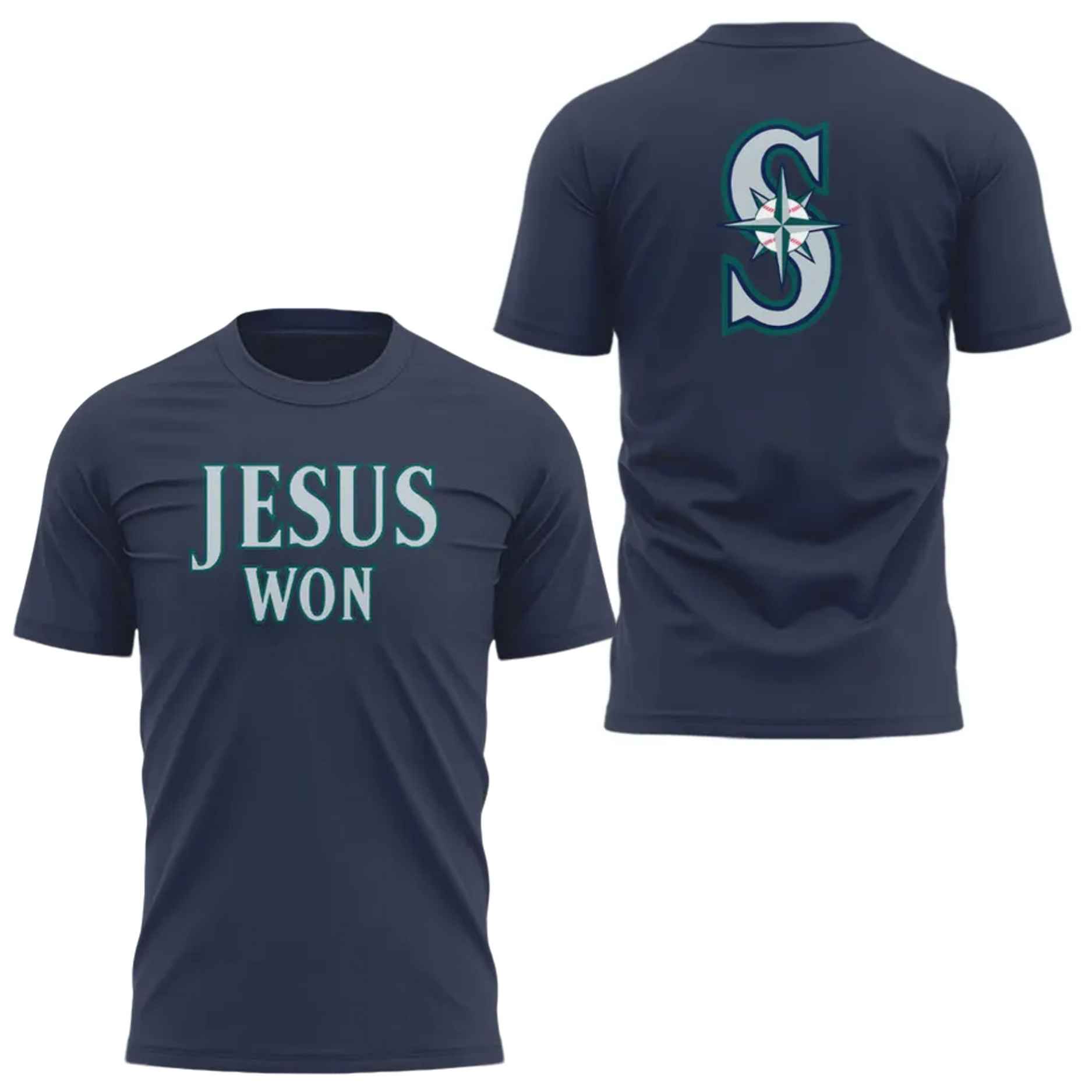 Showcase your ultimate conviction both on and off the field with the Mariners Jesus Won T-Shirt!