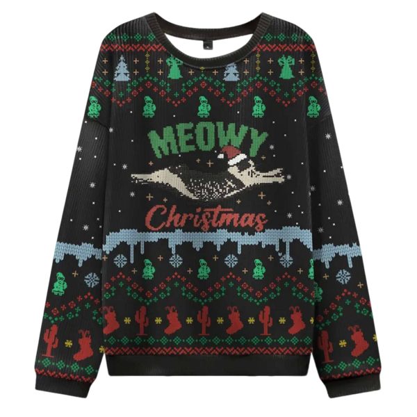 Ready to get your paws on this sweater? Order the Meowy Christmas Adventure Ugly Sweater today and show off your holiday spirit!