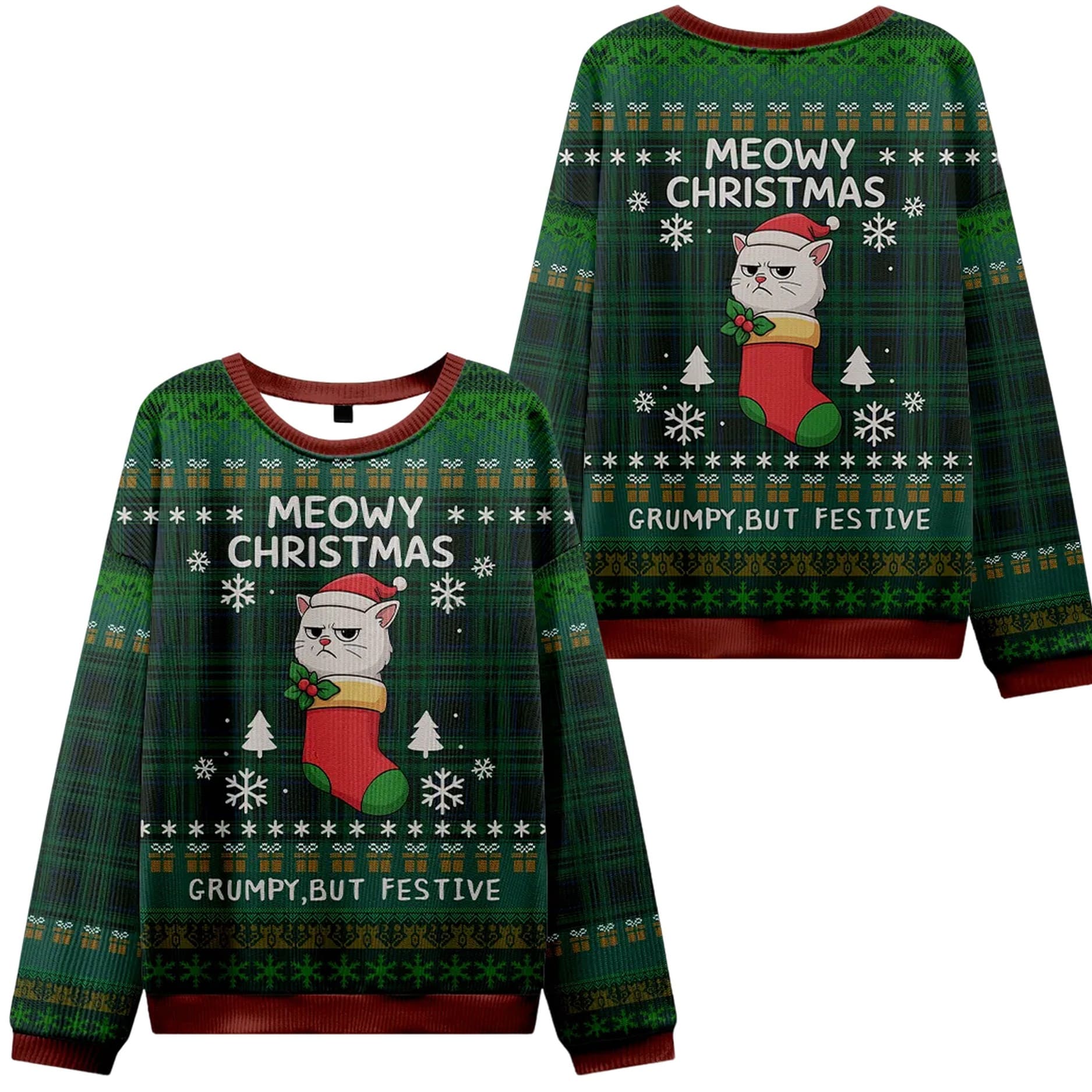 If your holiday spirit is more about silent judgment than cheerful carols, the Meowy Grumpy Festive Christmas Ugly Sweater is your purr-fect match!